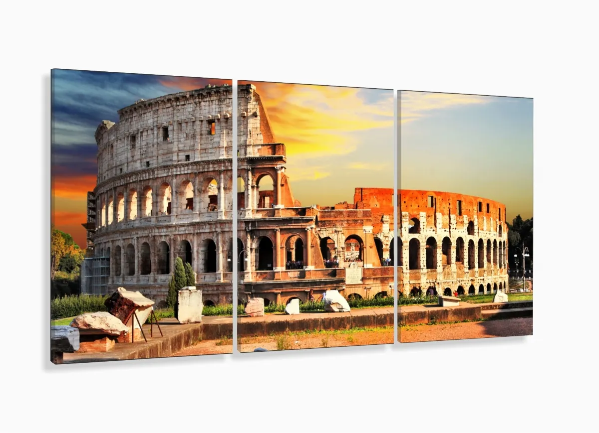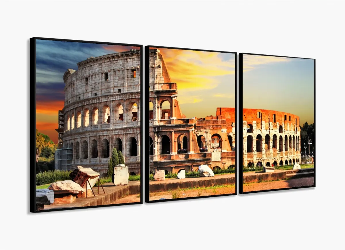 Painel Em Tecido Decorativo Coliseu Roma Itália Para Sala com moldura filete