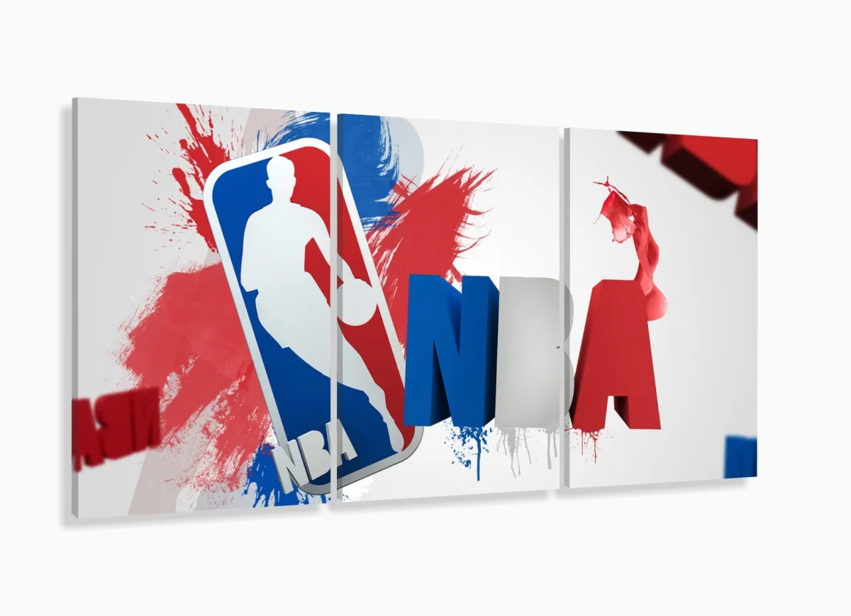 Painel Nba Basquete Decorativo B Tela Em Tecido 120x60 3 peças com moldura filete