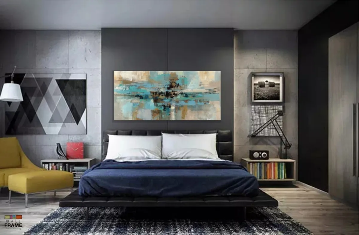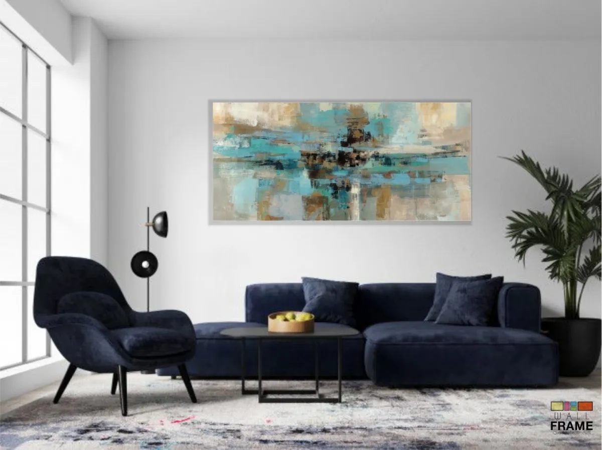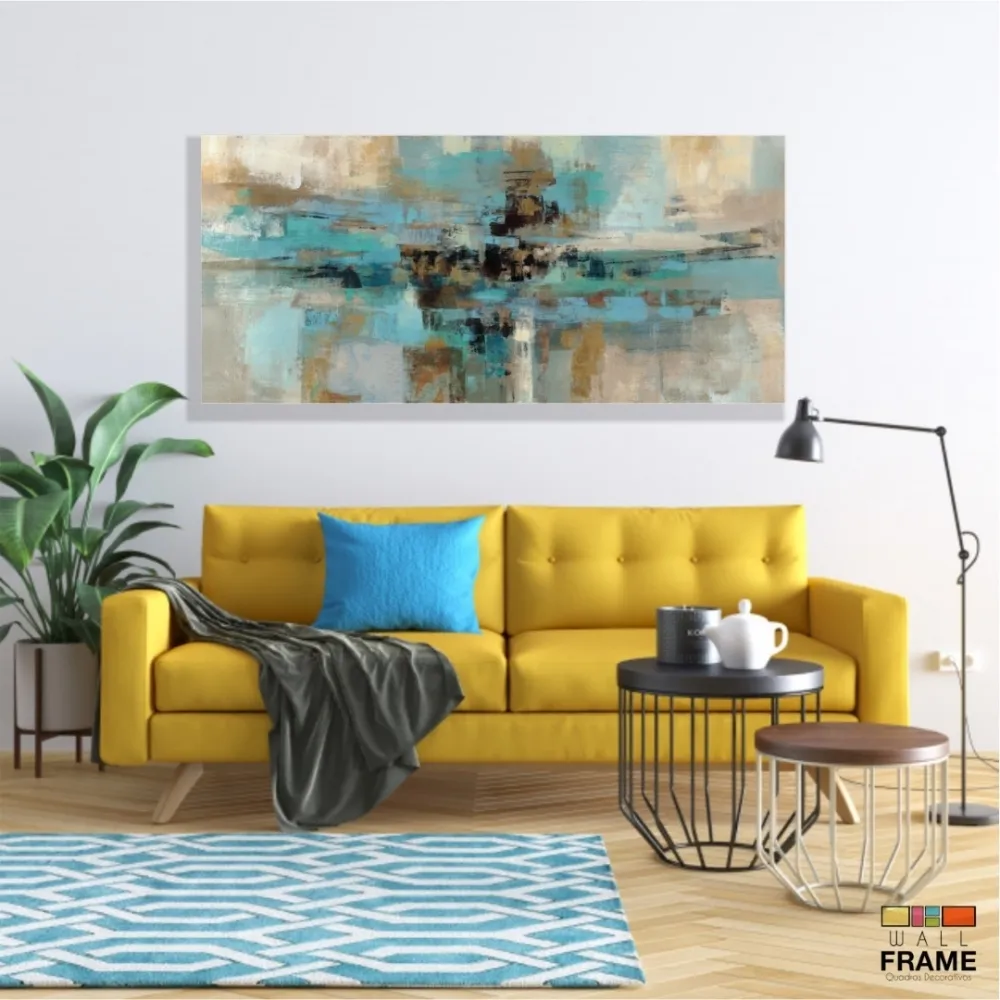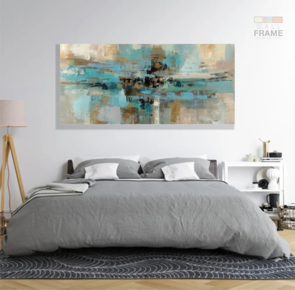 Quadro Abstrato Moderno 120x60 Sala Escritório Tons Turquesa em Tecido Canvas