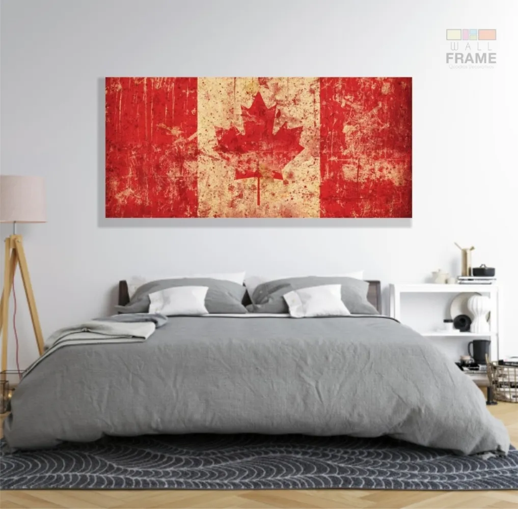 Quadro Arte Mosaico Bandeira Canadá decorativo em Tecido Canvas