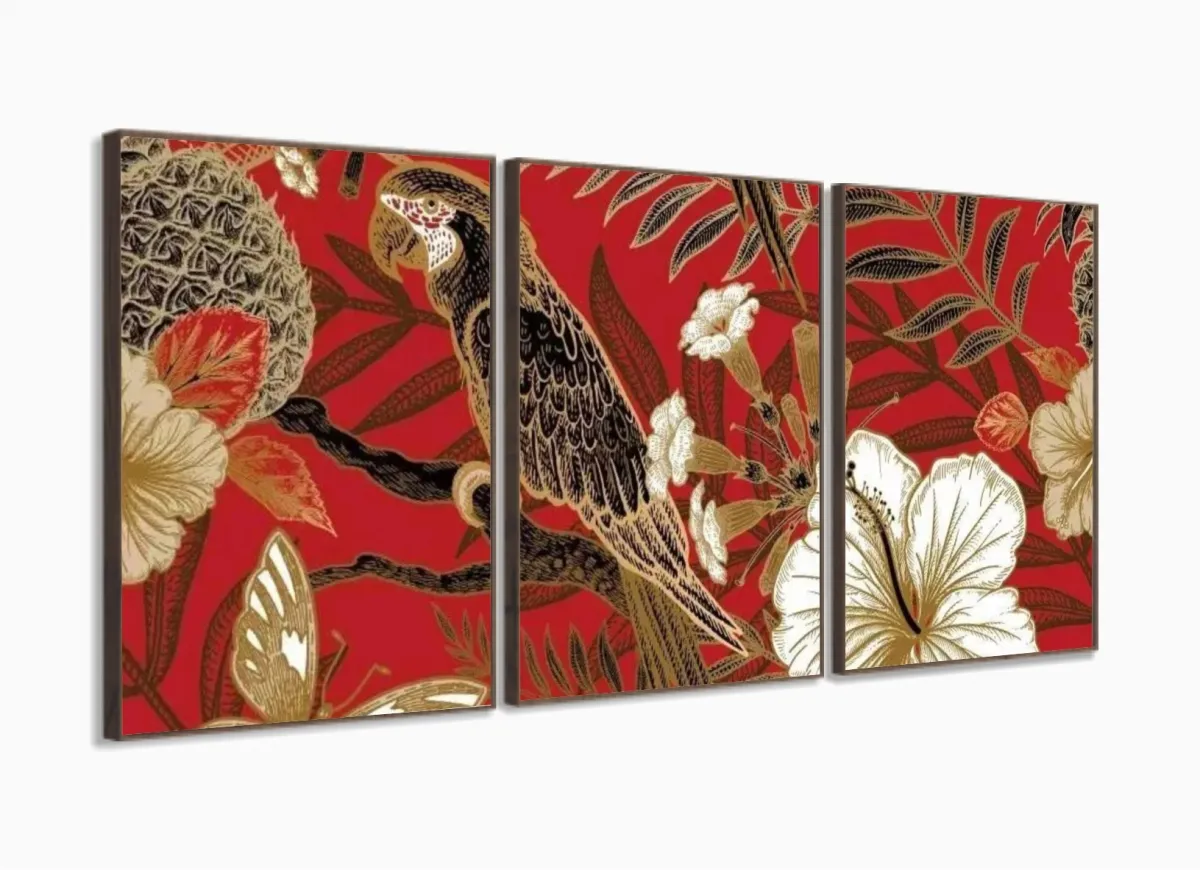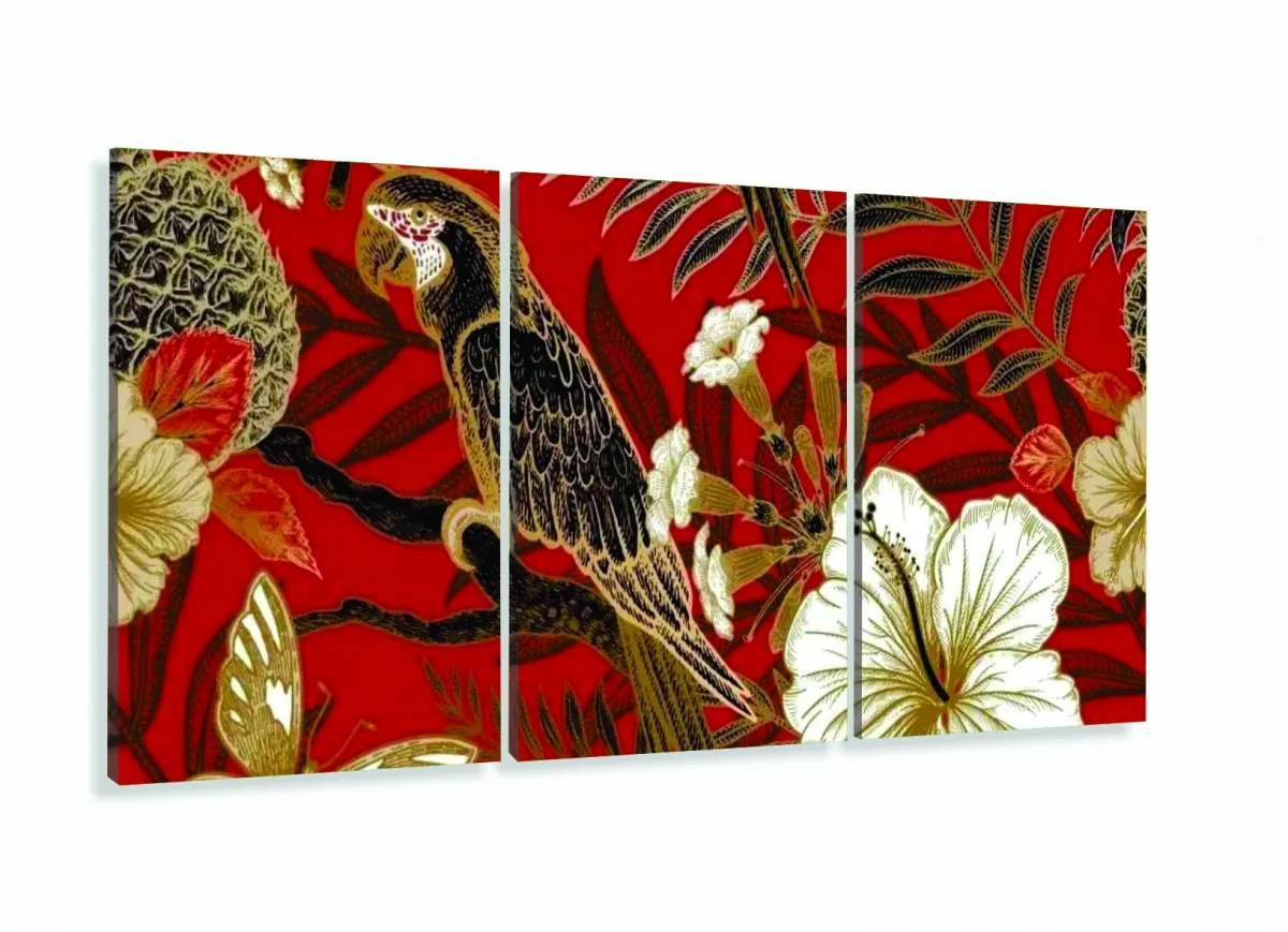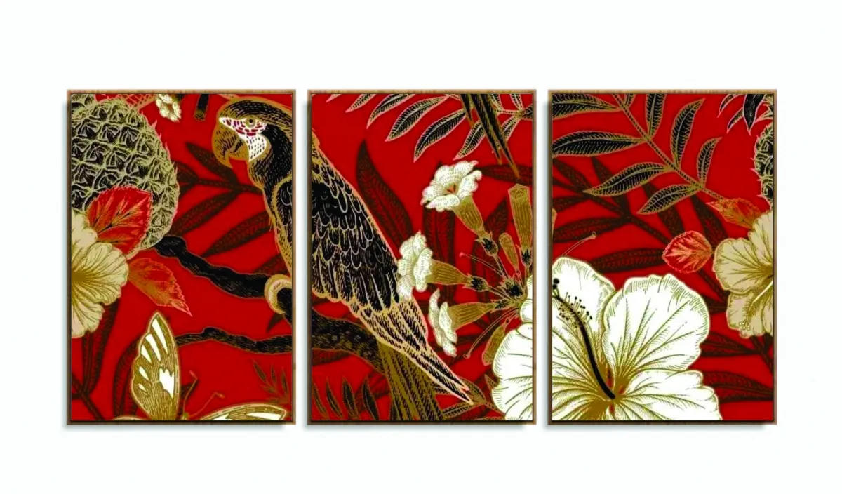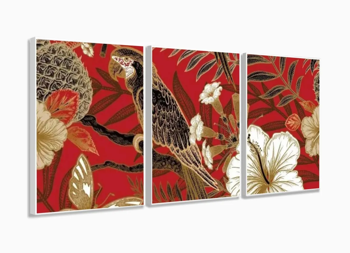 Quadro Decorativo 120x60 Sala Quarto Arte Arara E Flores 1 com moldura filete