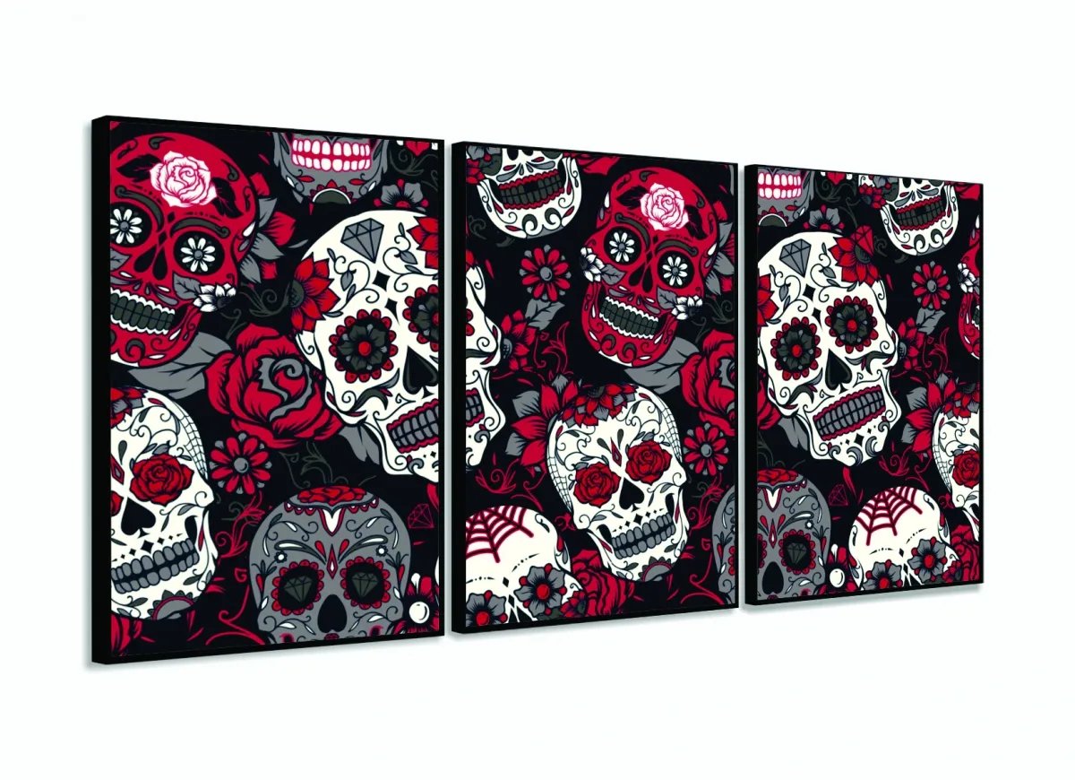 Quadro Decorativo 120x60 Sala Quarto Arte Caveira Mexicana 1 com moldura filete