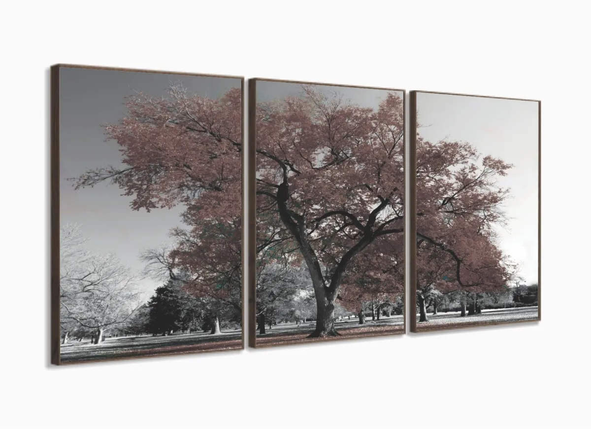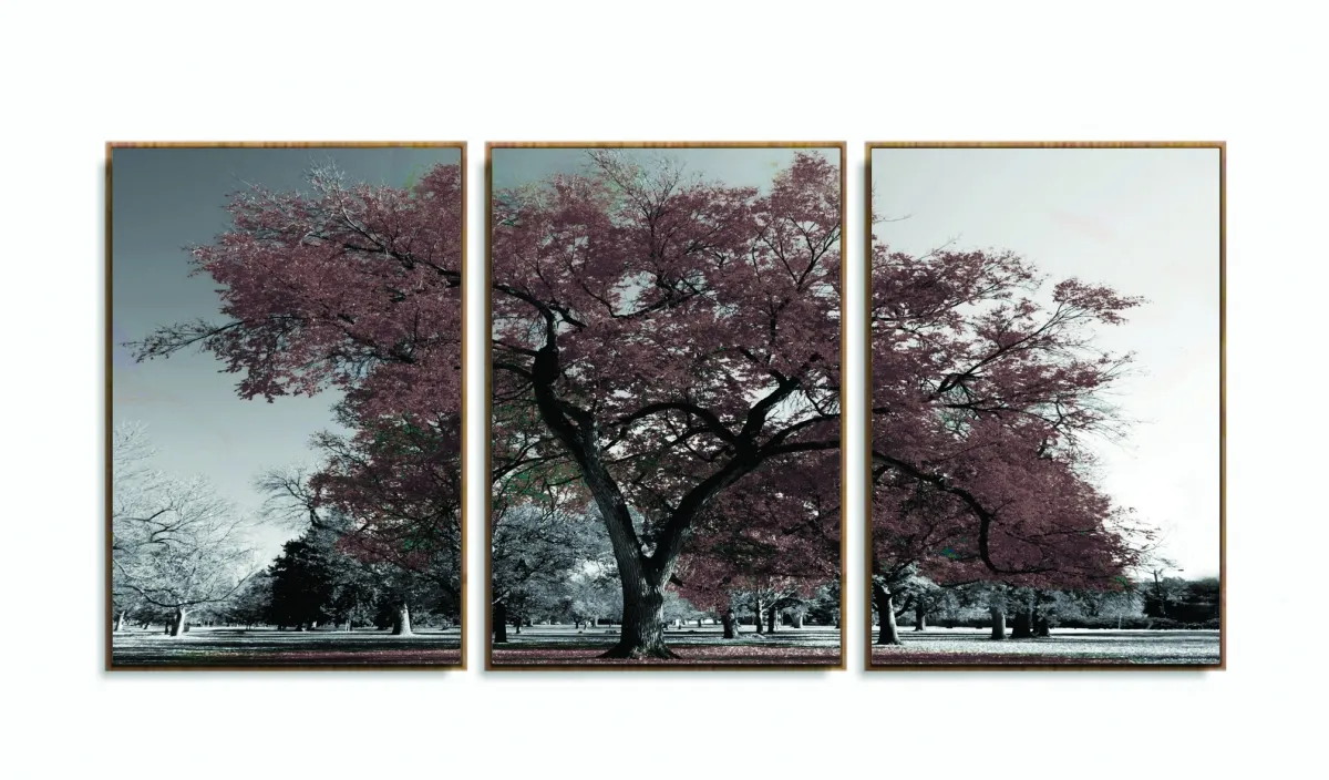 Quadros Decorativos Arvore Paisagem Sala Quarto 120x60 com moldura filete