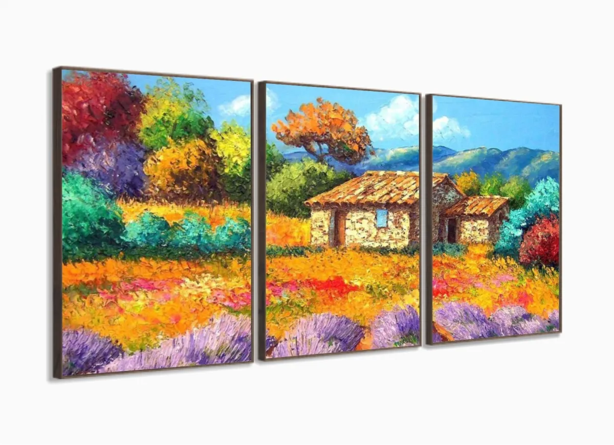 Quadro Decorativo 120x60 Sala Quarto Pintura Casinha Rústica com moldura filete