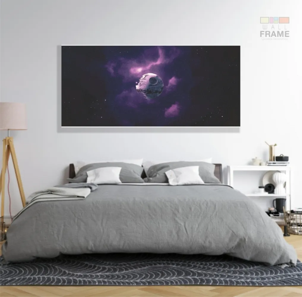 Quadro Decorativo 130x60 Sala Quarto Star Wars Death Star em Tecido Canvas