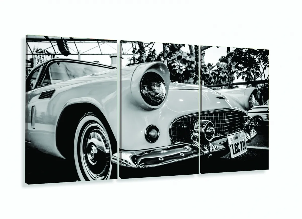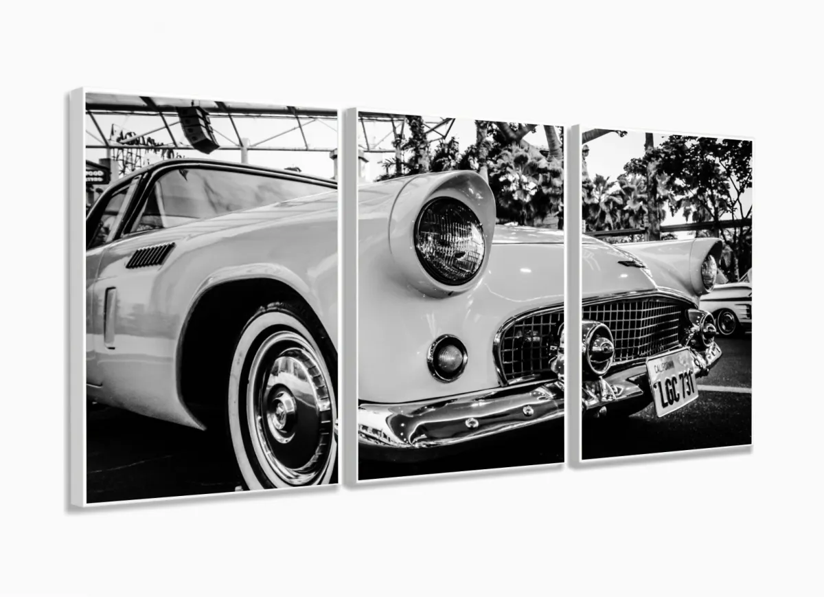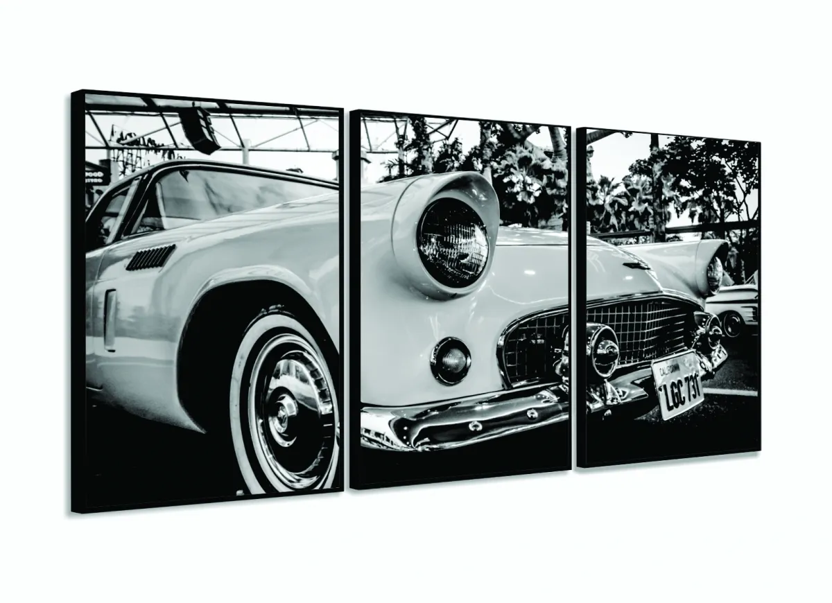 Quadro Decorativo 3 peças Carro Antigo Preto e Branco 120x60 com moldura filete