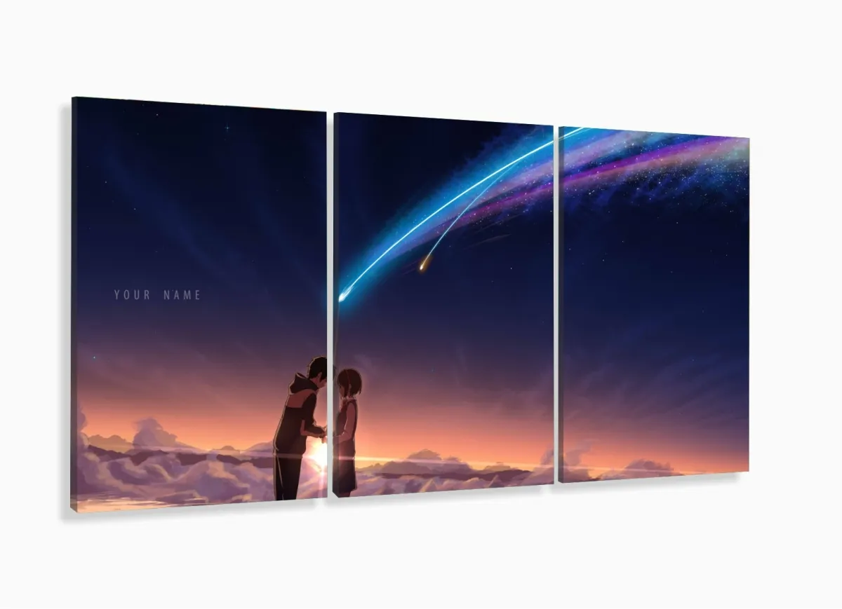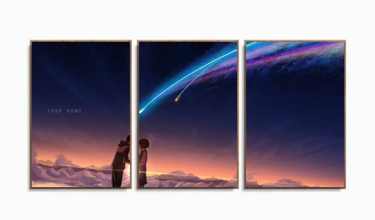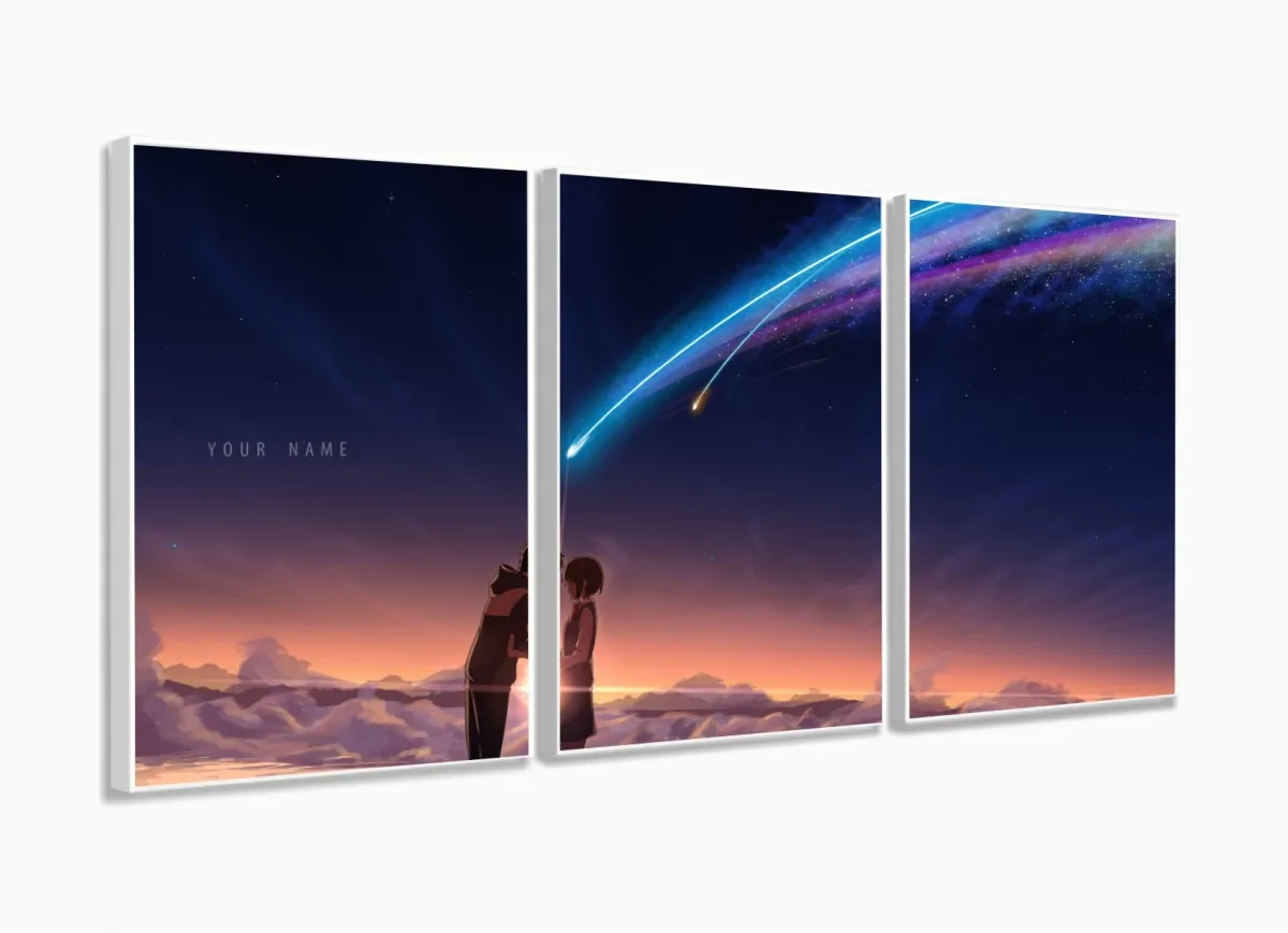 Quadro Decorativo Anime 3 peças 120x60 cm em tecido com moldura filete