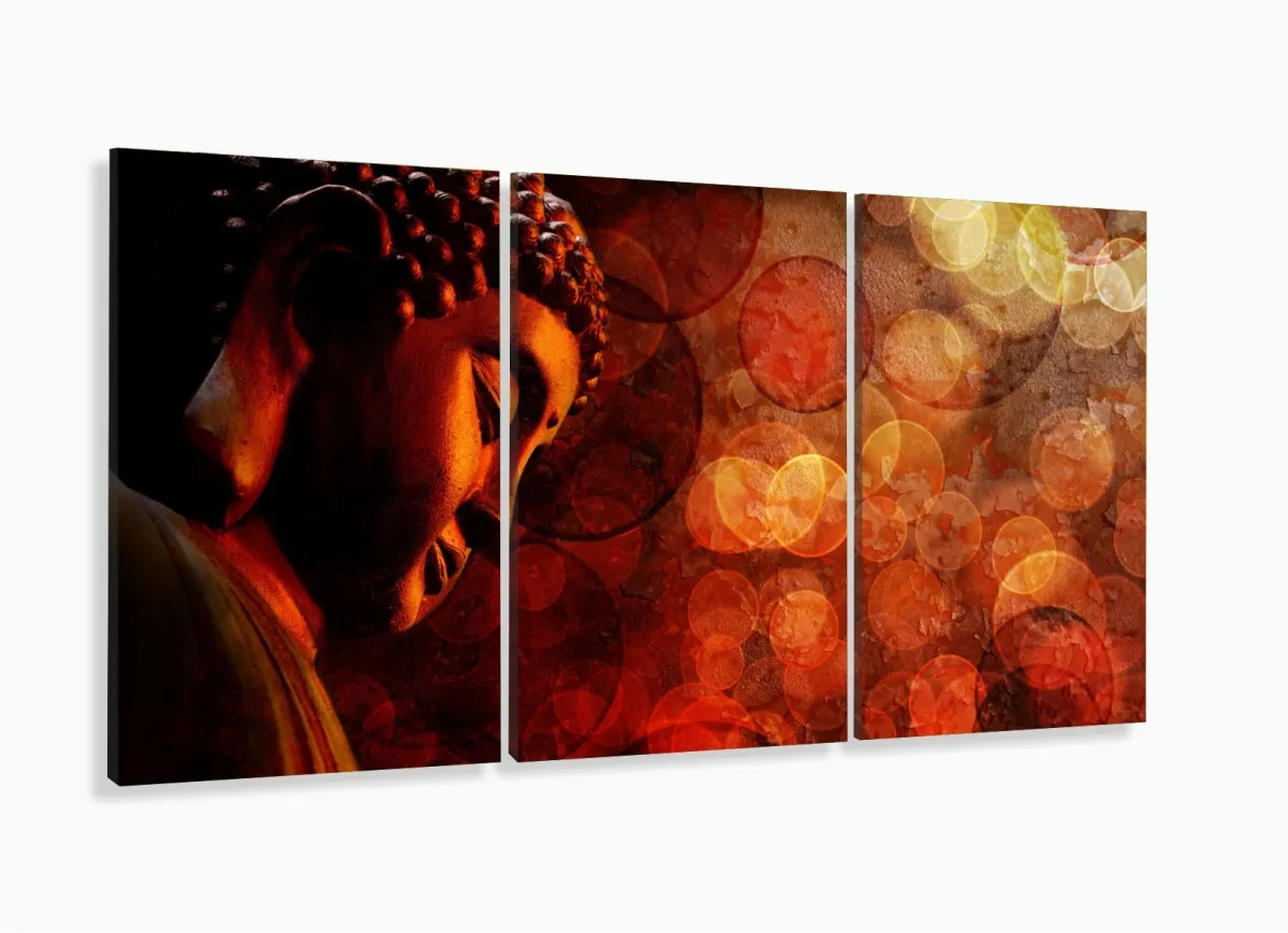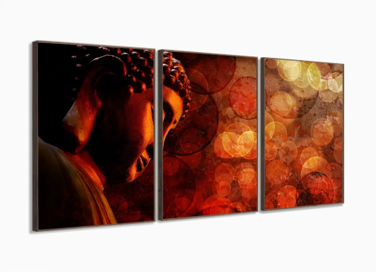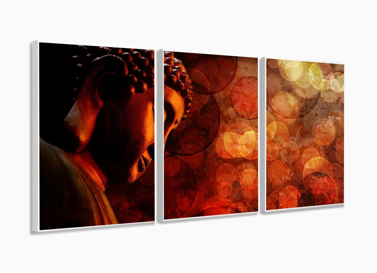 Quadro Decorativo Buda Mistico 120x60 3 peças Mosaico com moldura filete