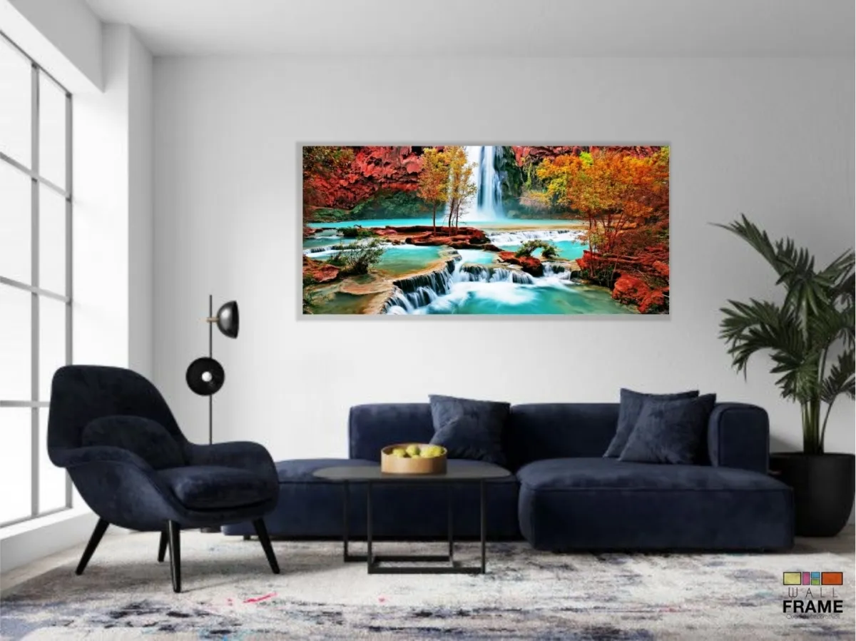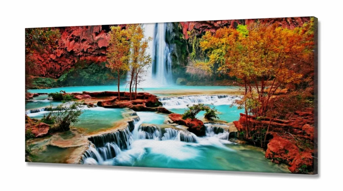 Quadro Decorativo Cachoeira Azul 130x60 em Tecido Canvas 130x60