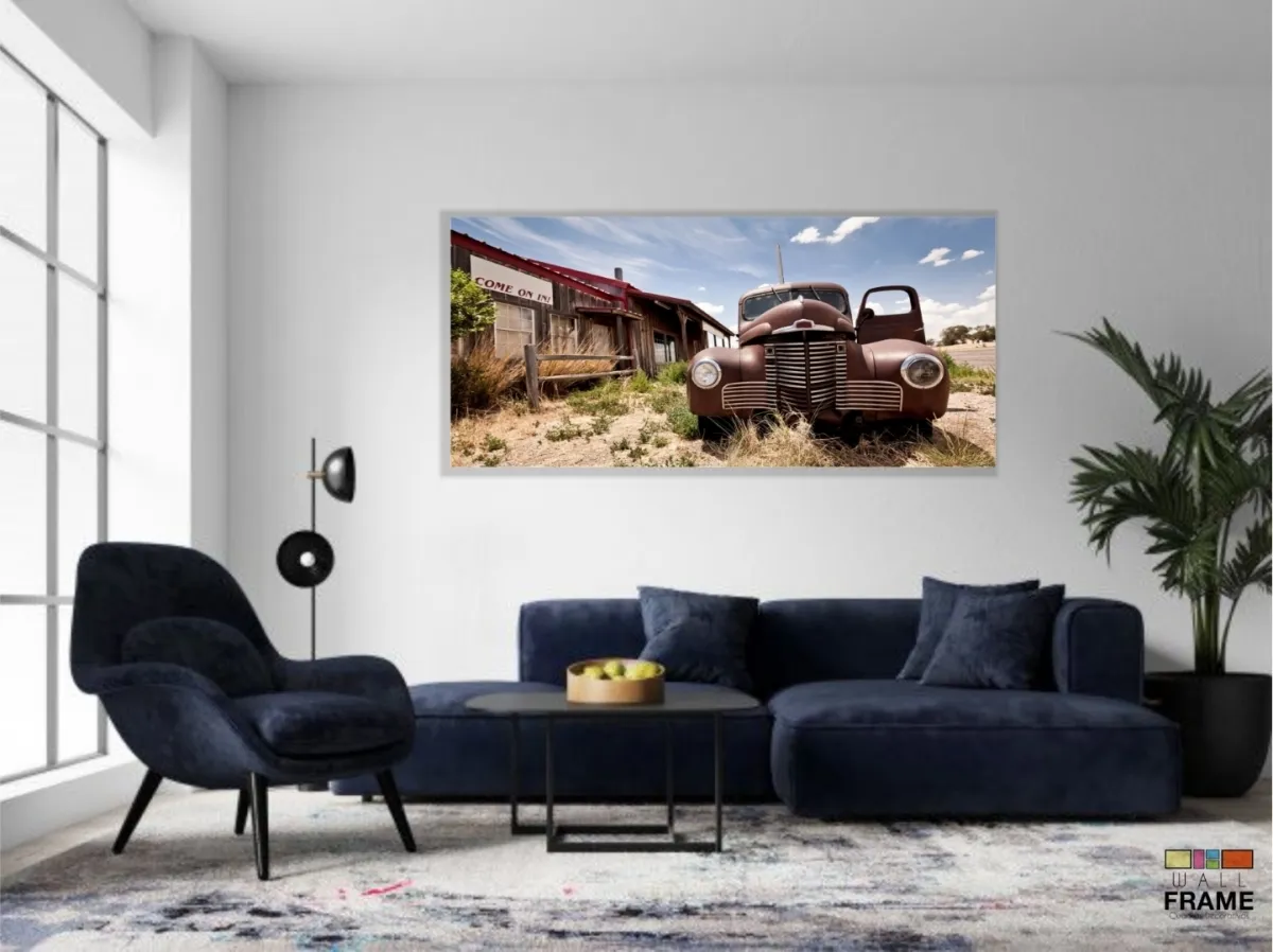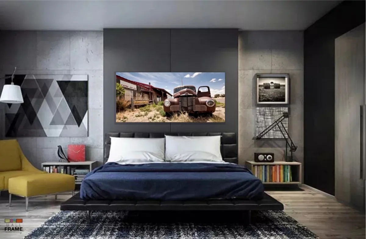 Quadro Decorativo Carro Antigo Sala 130x60 em Tecido Canvas