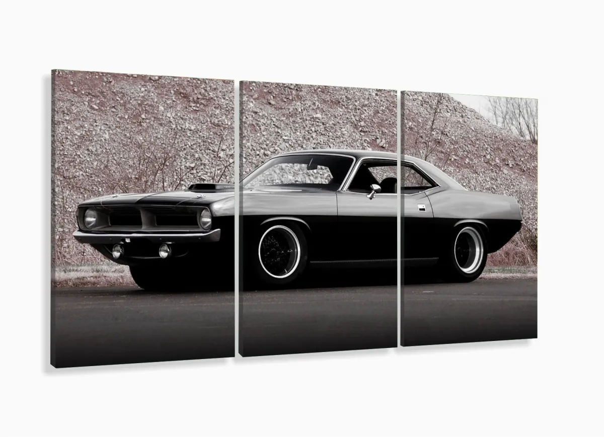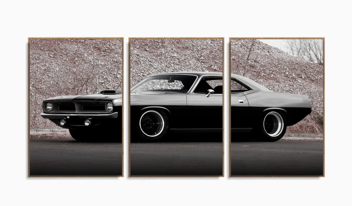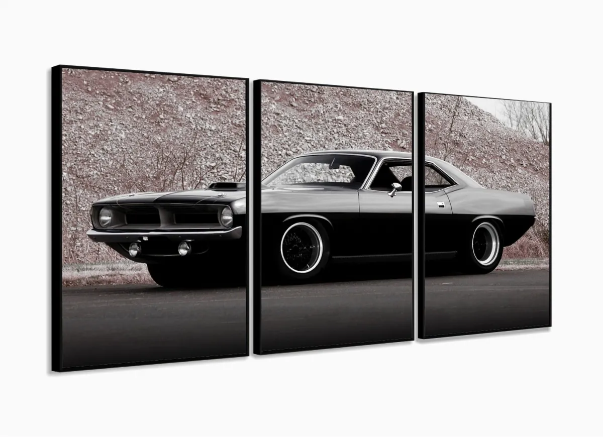 Quadro Decorativo Carro Charger 120x60 3 peças em tecido com moldura filete