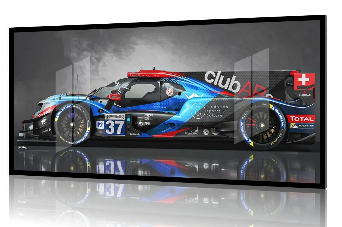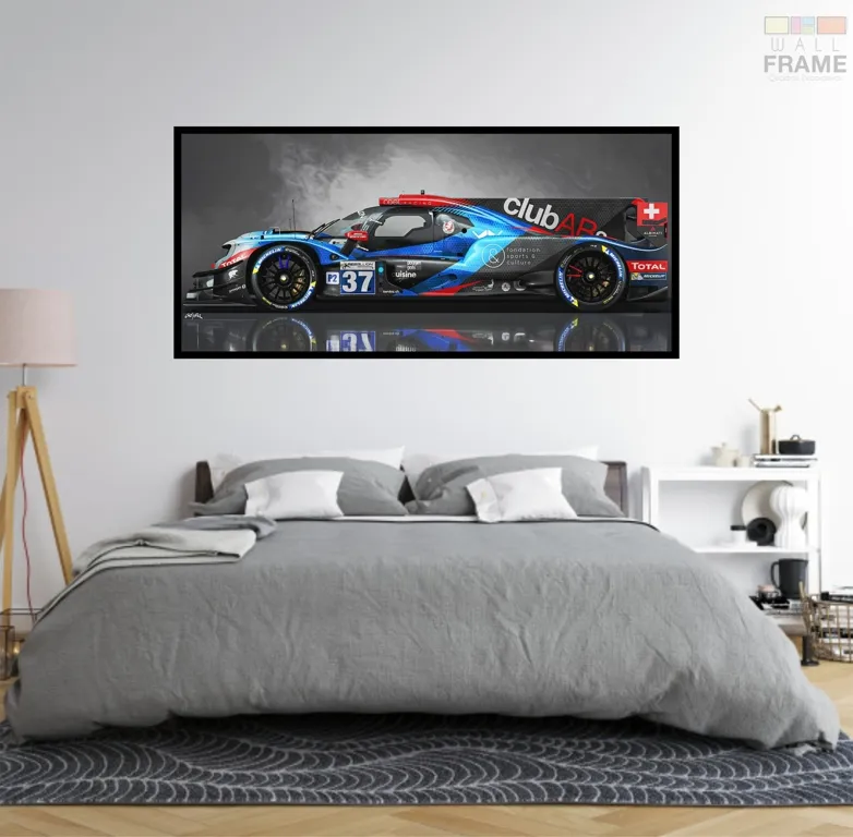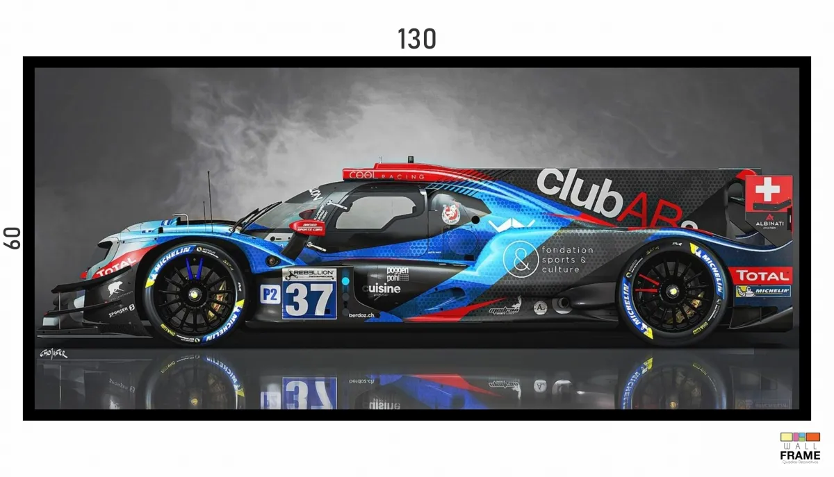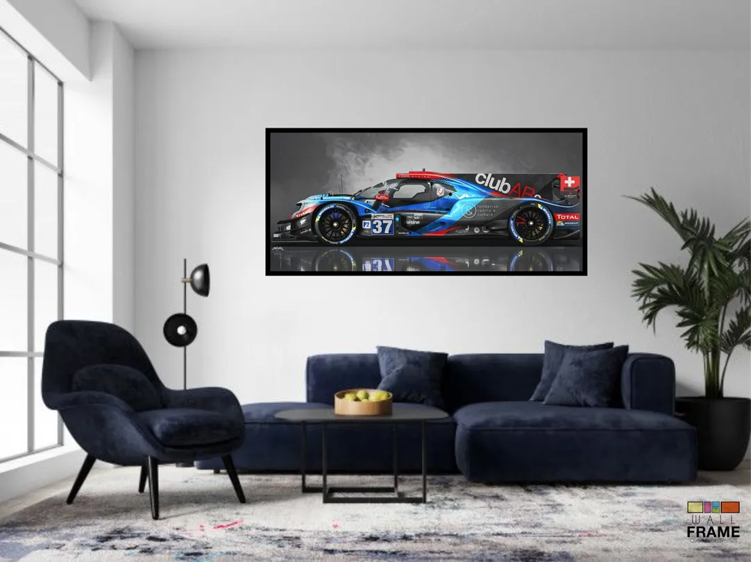 Quadro Decorativo Carro Corrida Alpine A480 130x60 moldura preta 2x2 cm
