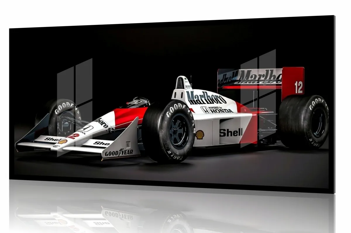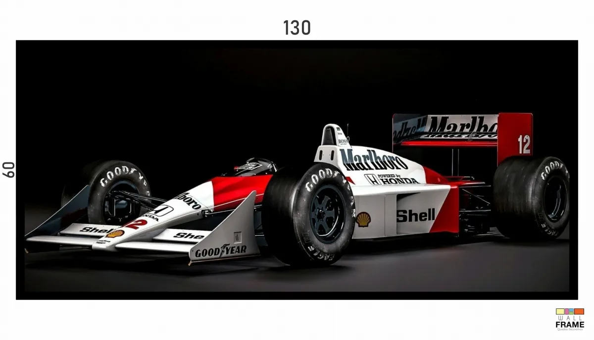 Quadro Decorativo Carro F1 Honda Marlboro Corrida 130x60 Moldura preta 2x2 cm