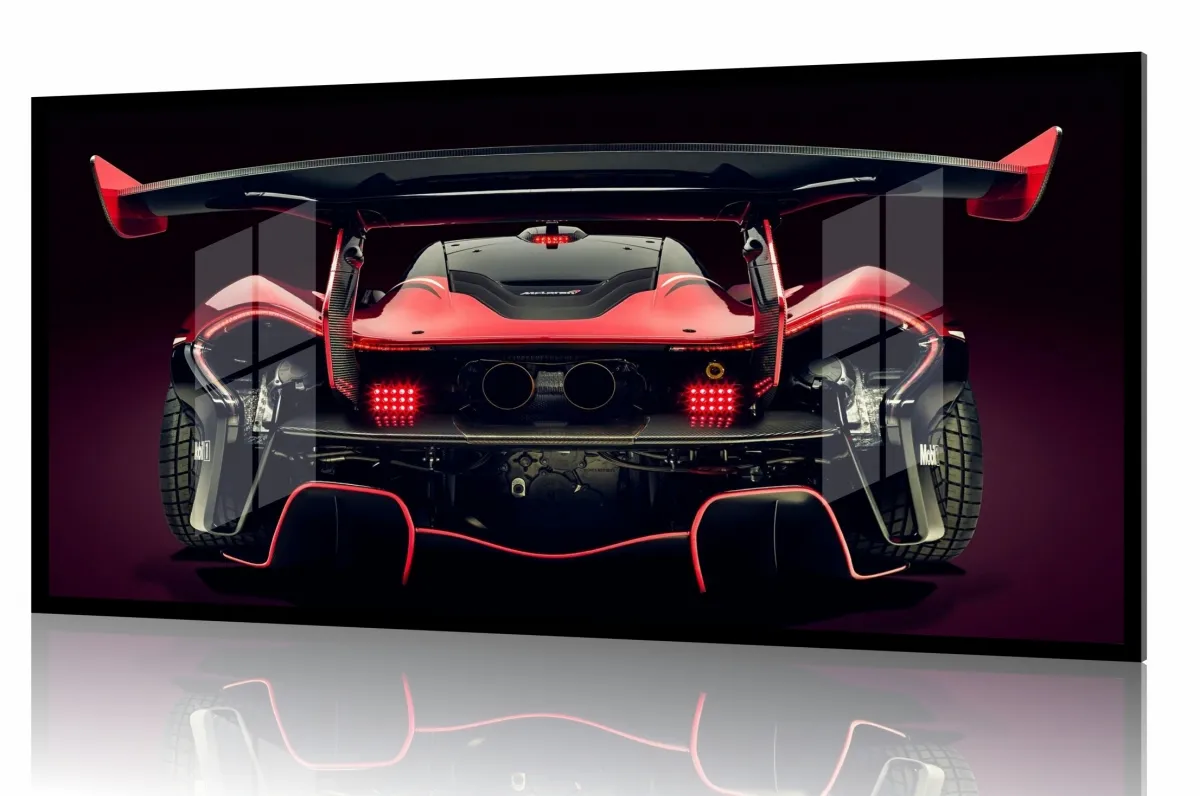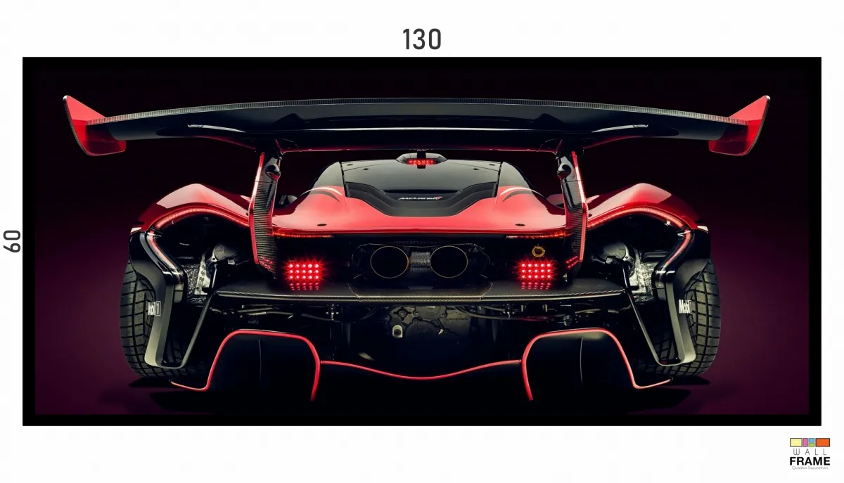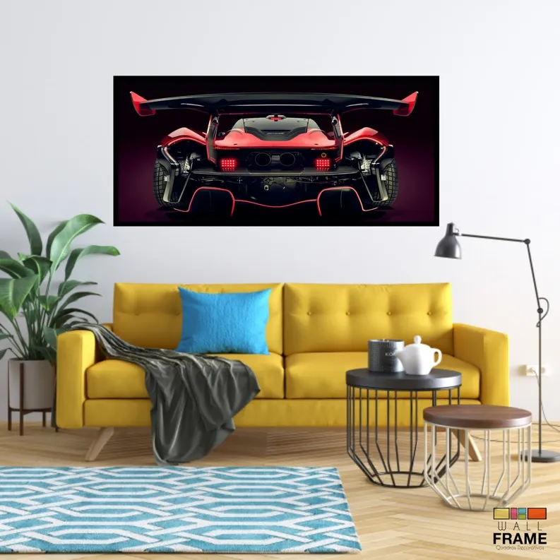 Quadro Decorativo Carro MC Laren Corrida 130x60 Moldura preta 2x2 cm