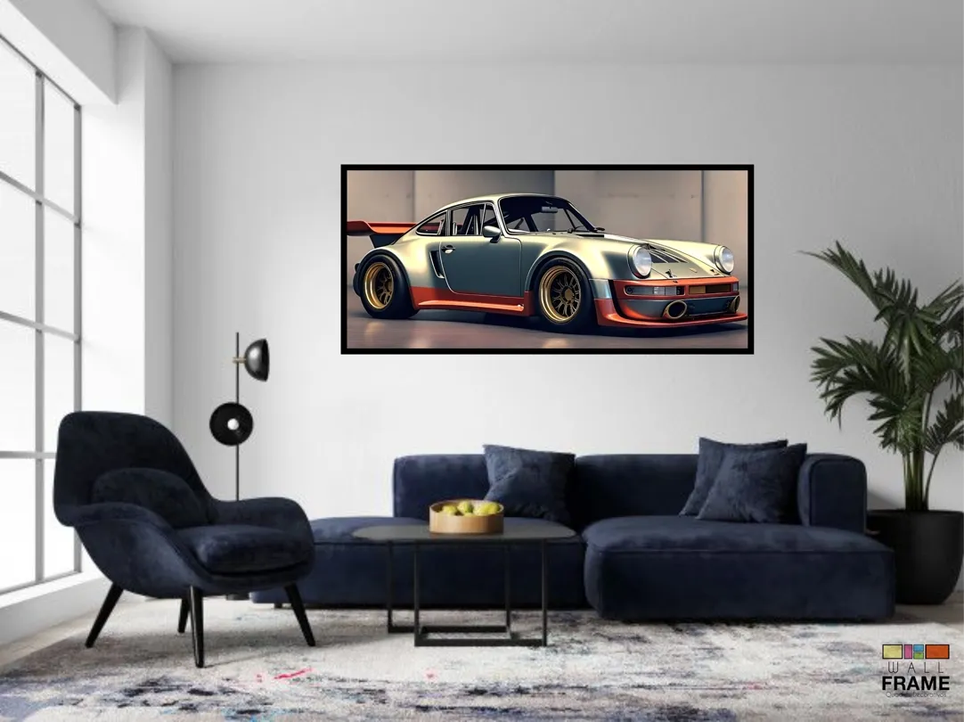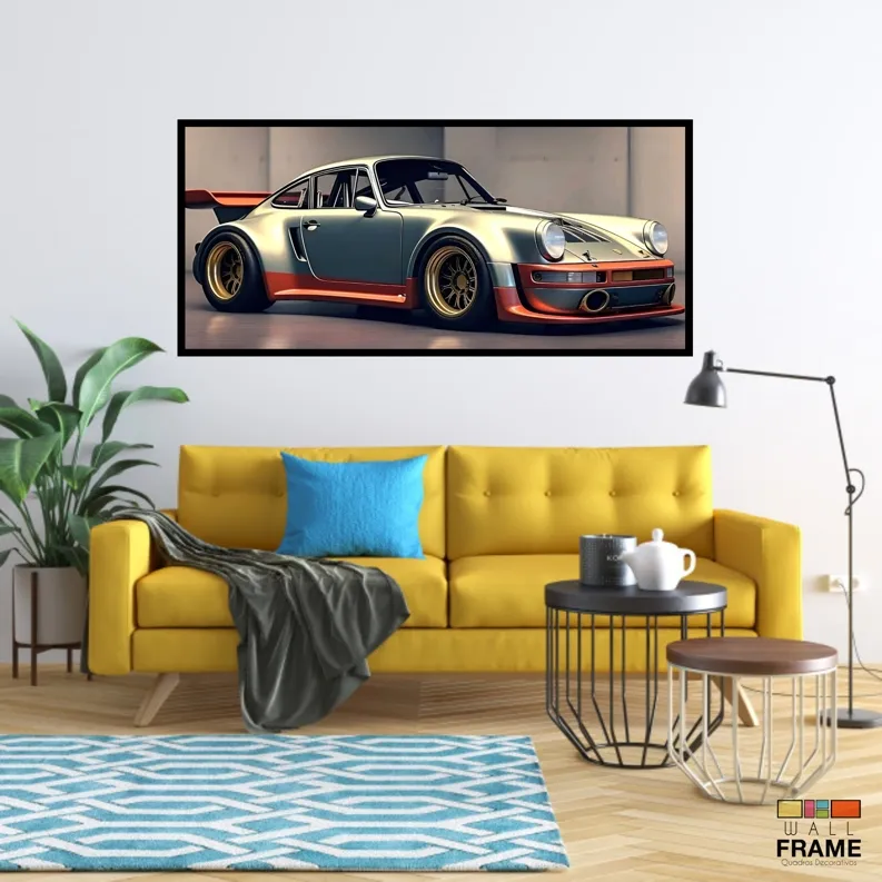 Quadro Decorativo Carro Super Porsche 130x60 Moldura preta 2x2 cm
