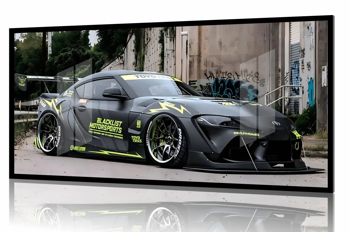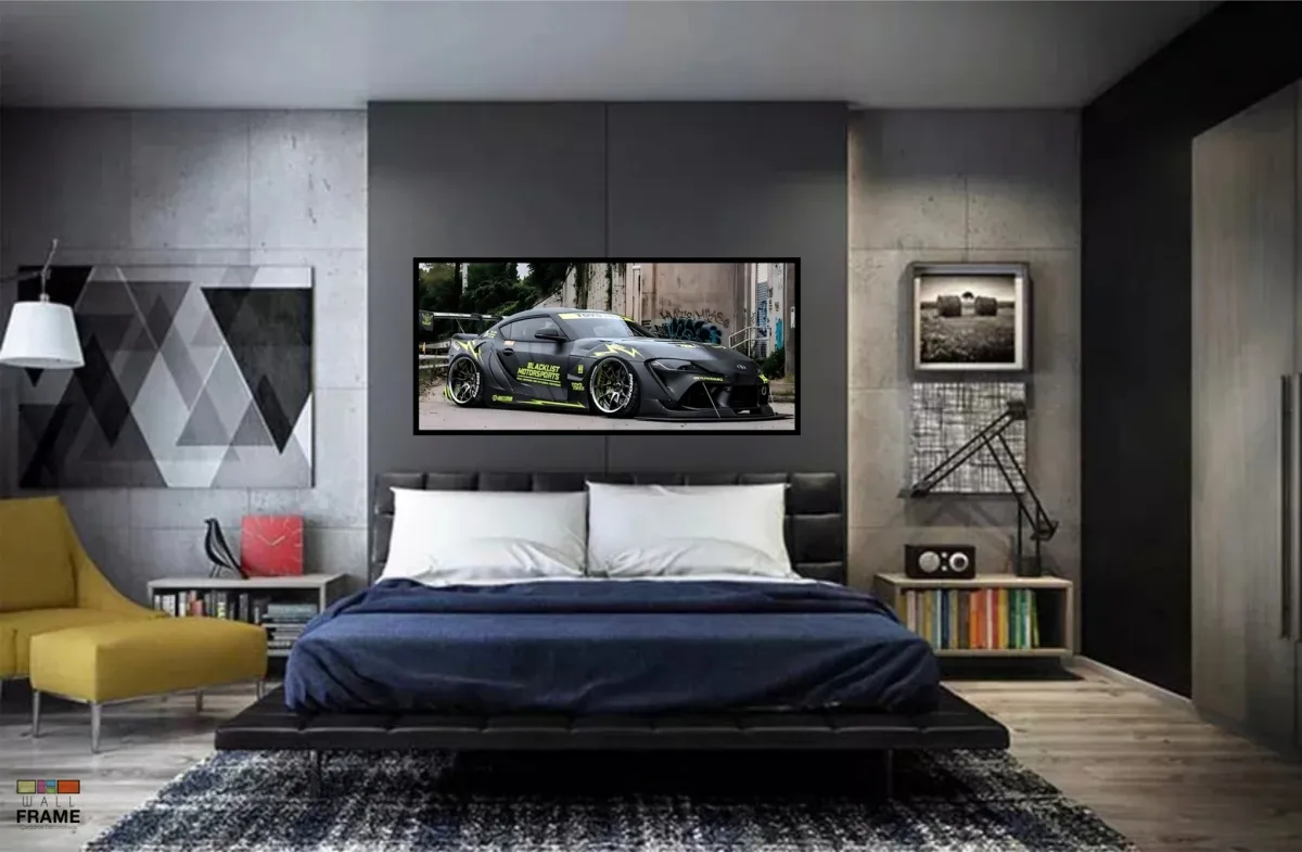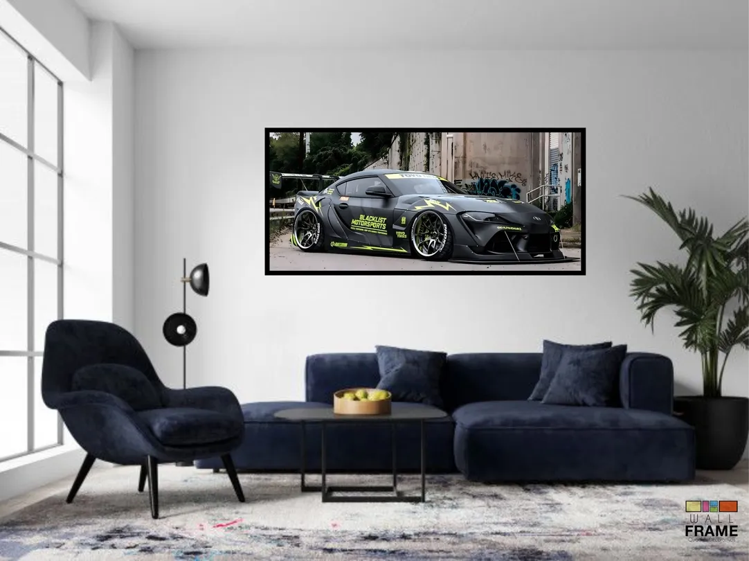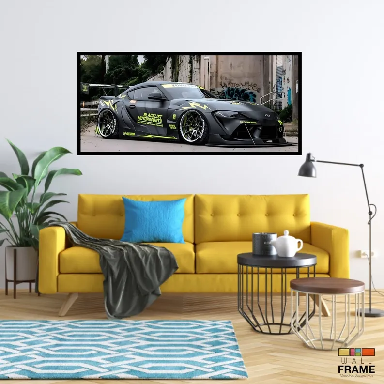 Quadro Decorativo Carro Toyota Supra Sport 130x60 Moldura preta 2x2 cm
