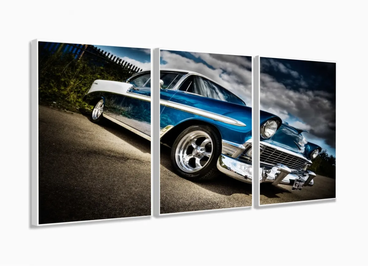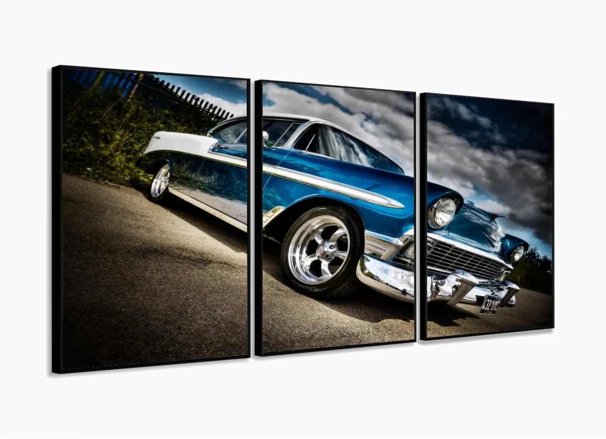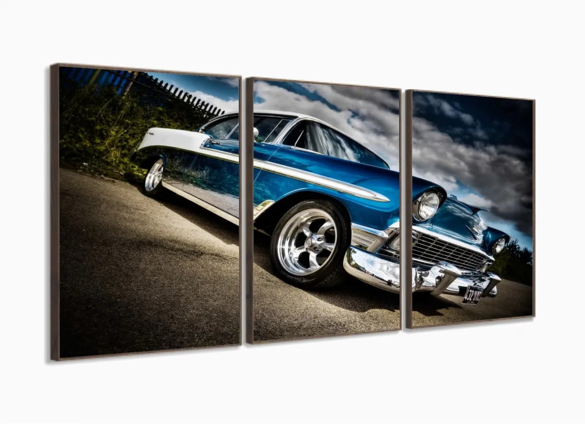 Quadro Decorativo Carro Vintage 3 Partes 120x60 com moldura filete
