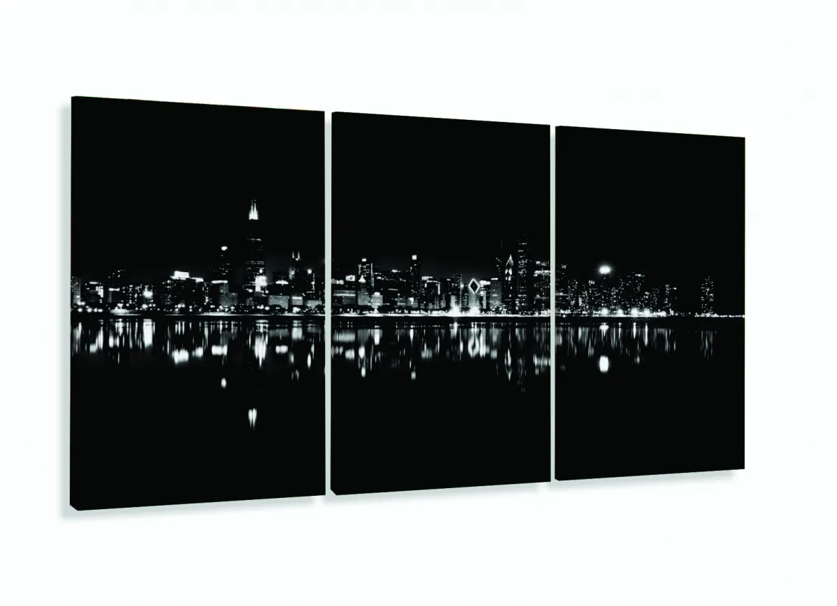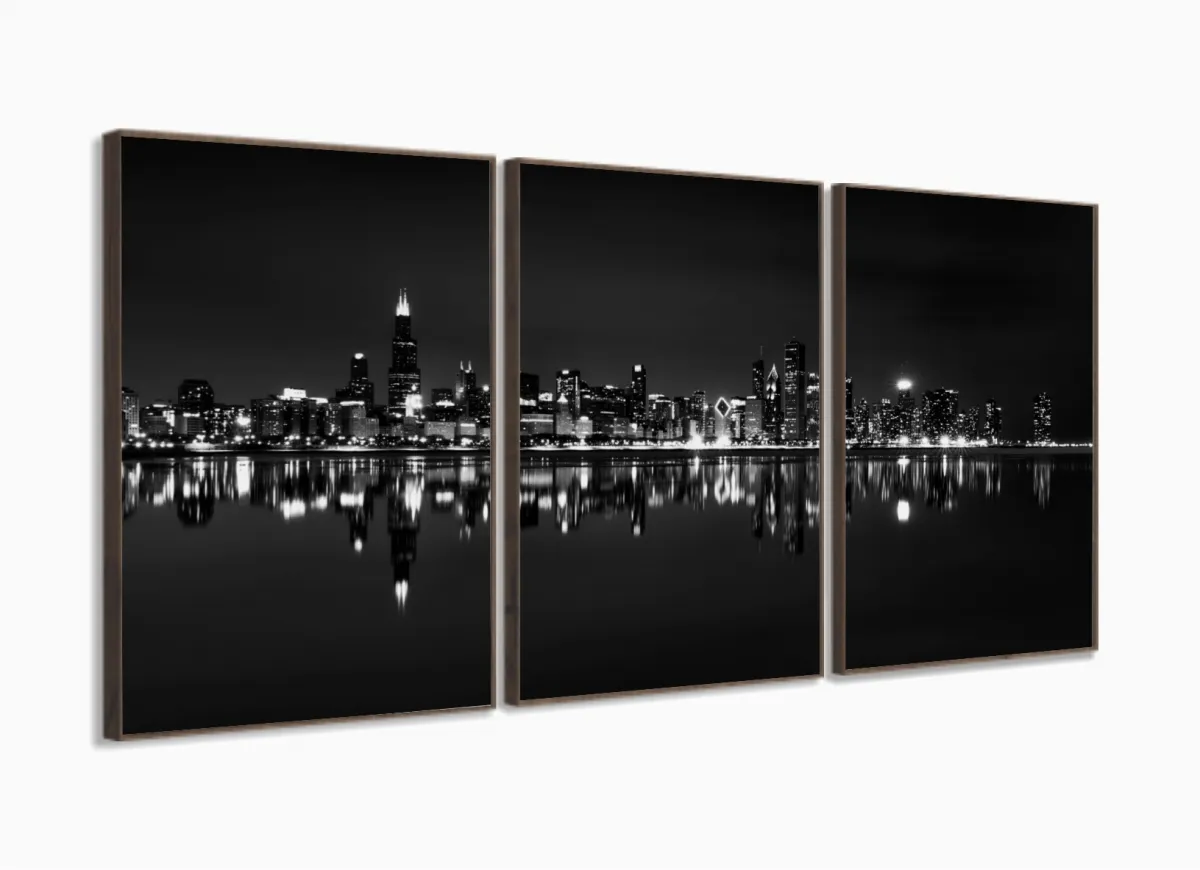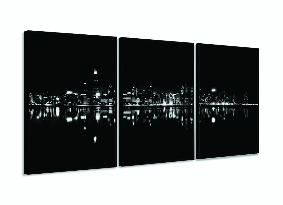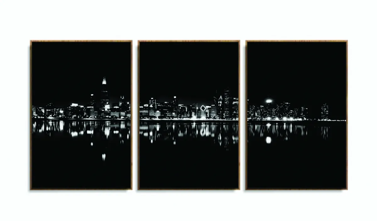 Quadro Decorativo Cidade Branco Preto 120x60 3 peças Sala Quarto com moldura filete
