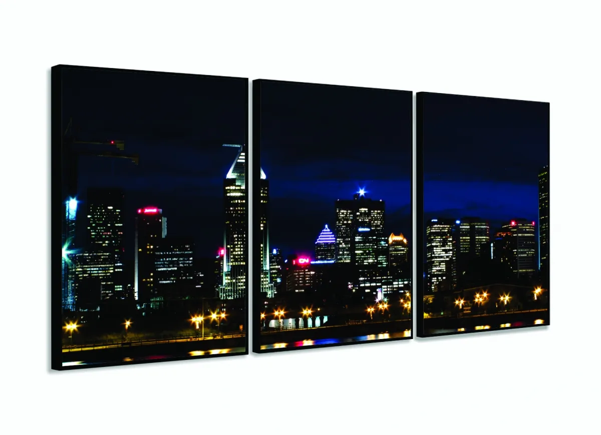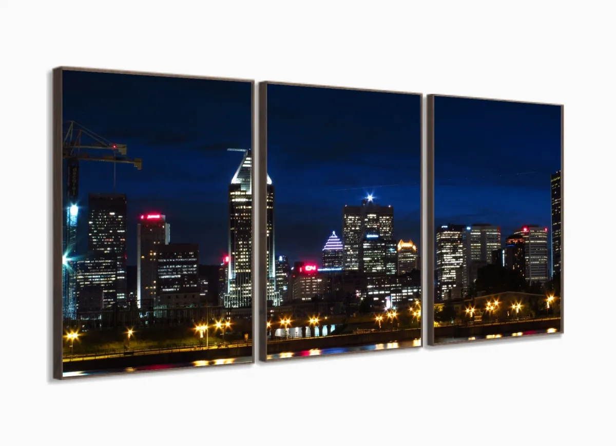 Quadro Decorativo Cidade Noturna 120x60 3 pçs com moldura filete