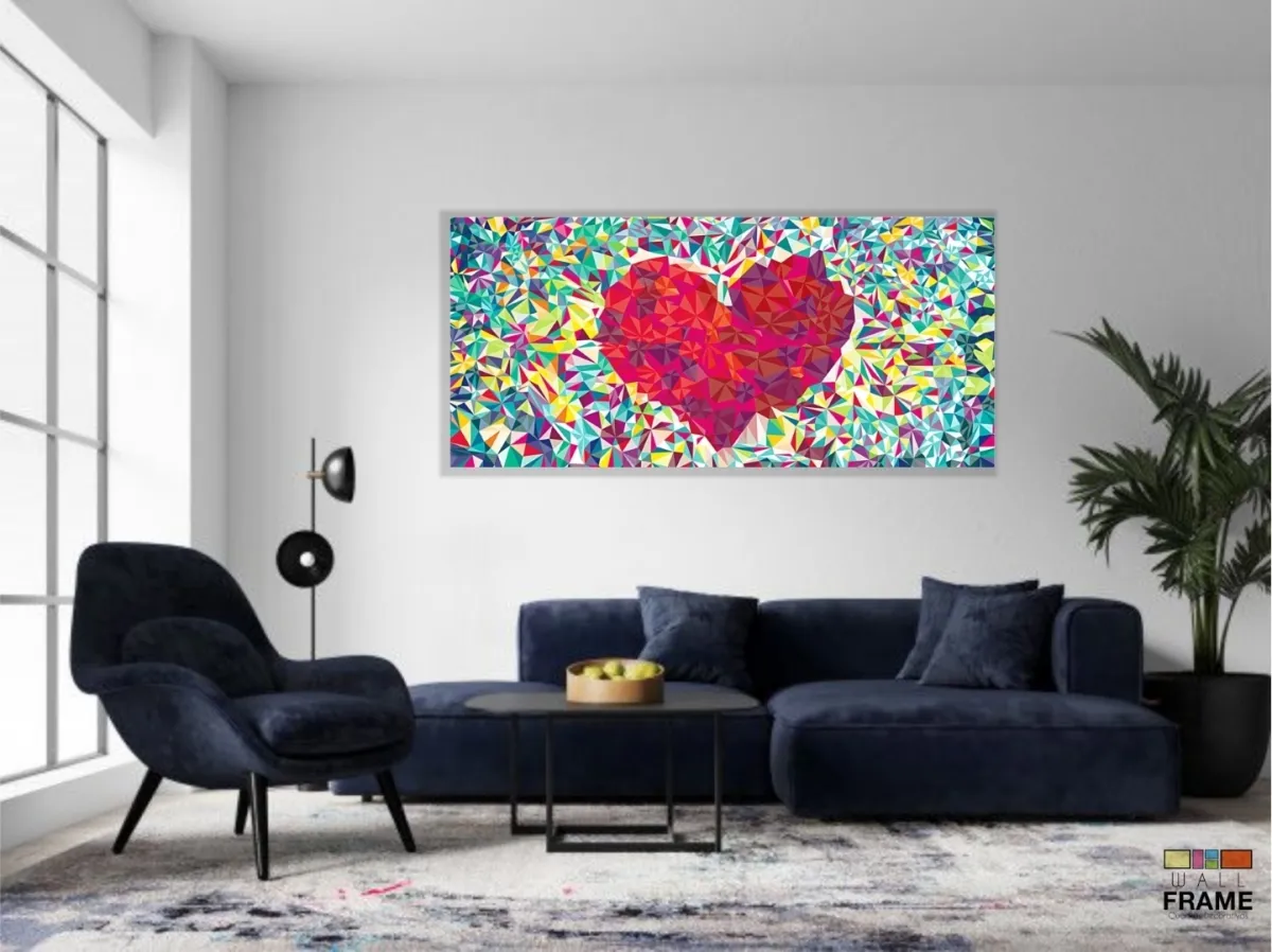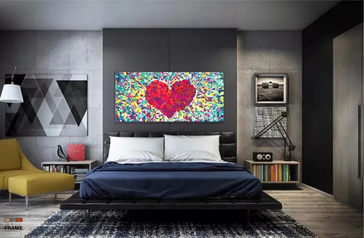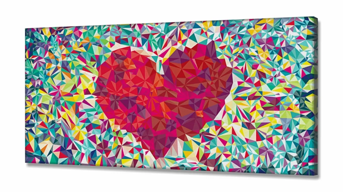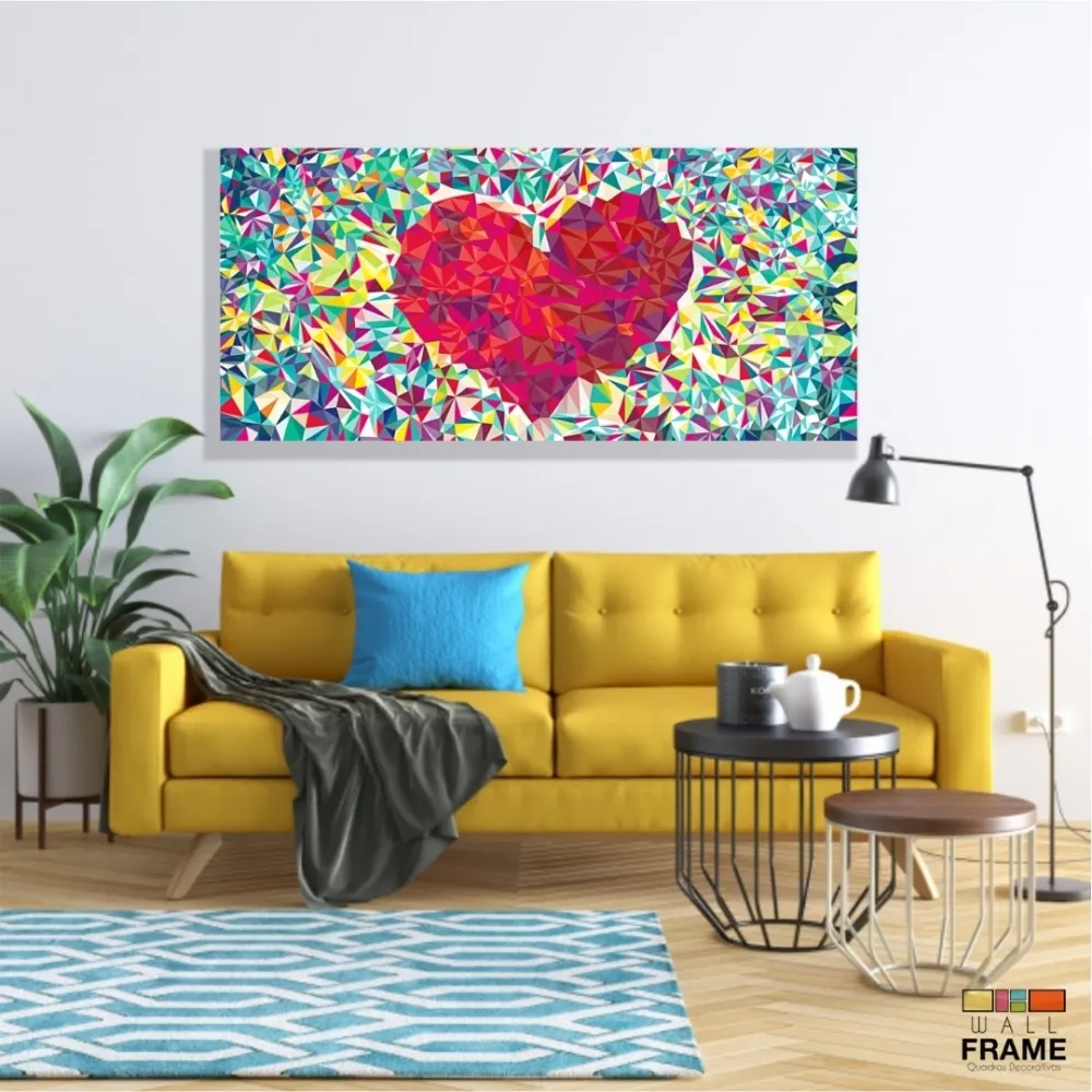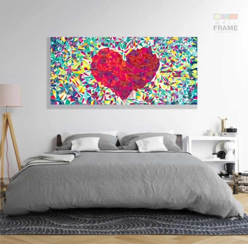 Quadro decorativo Coração Origami em Tecido Canvas 130x60