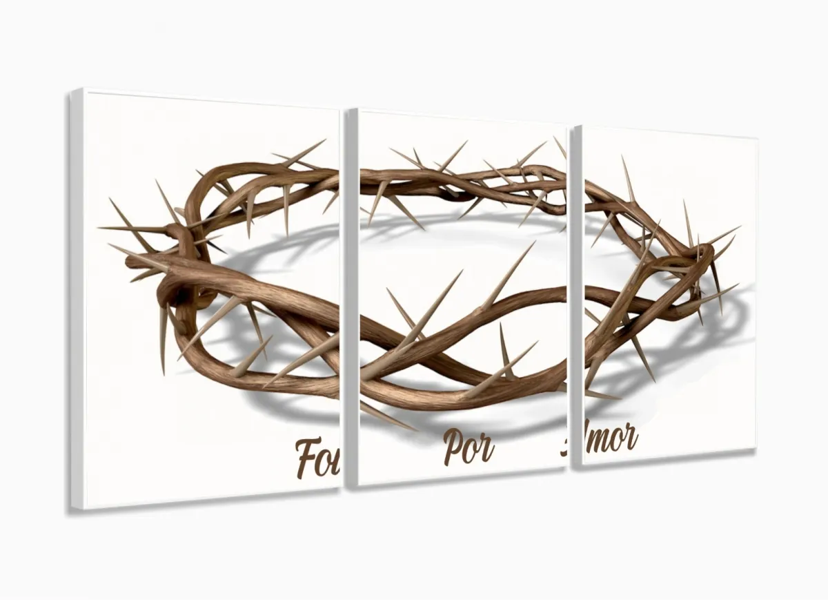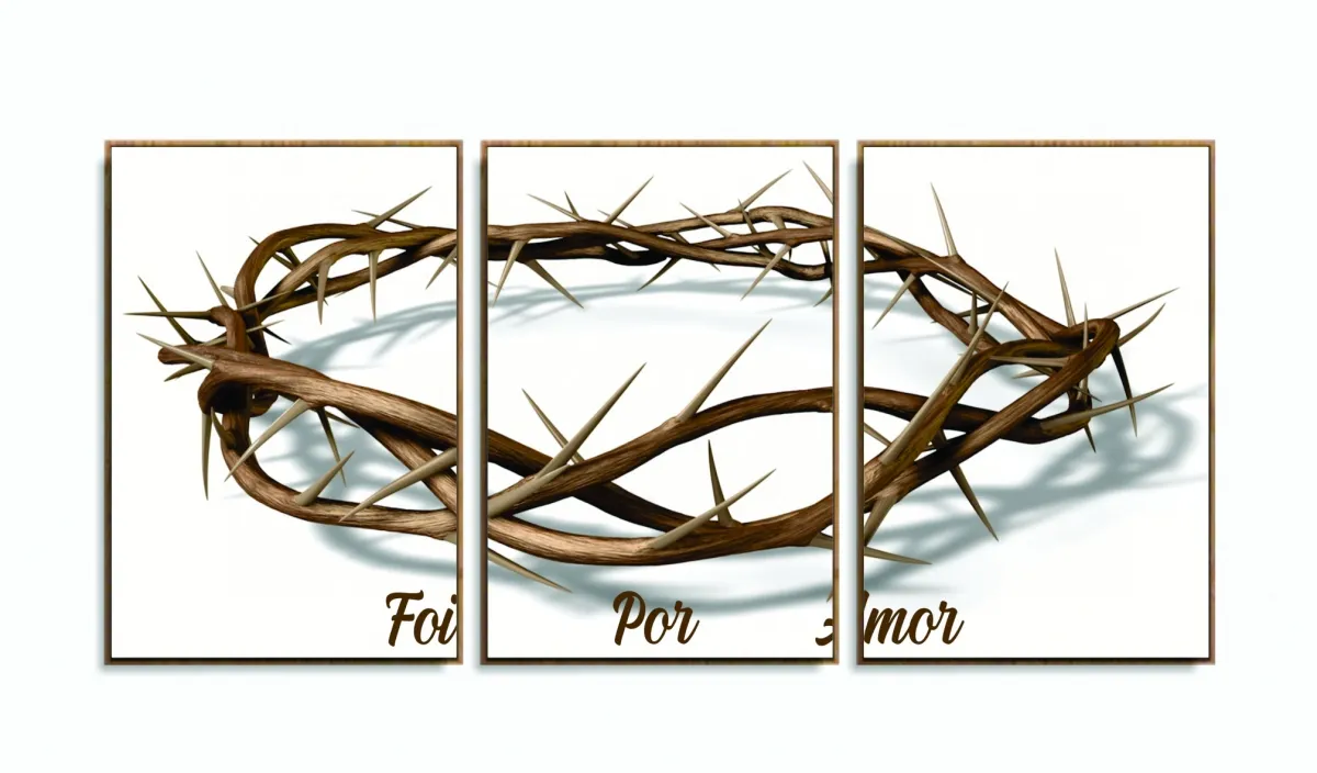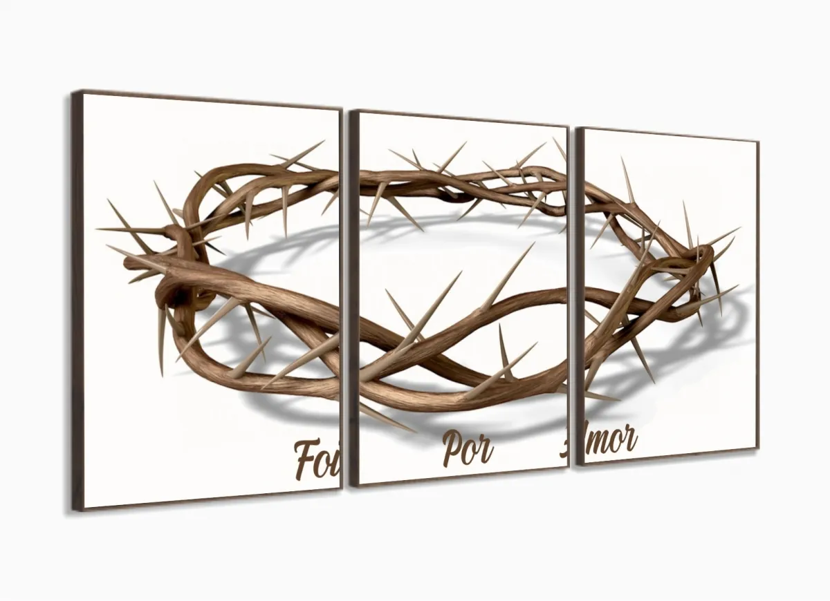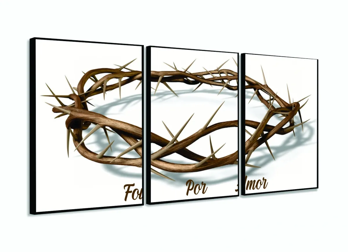 Quadro Decorativo Coroa Espinhos Amor 3 pç com moldura filete
