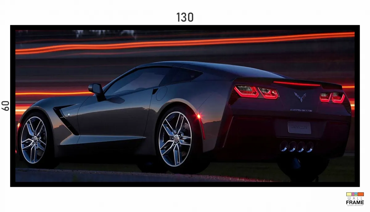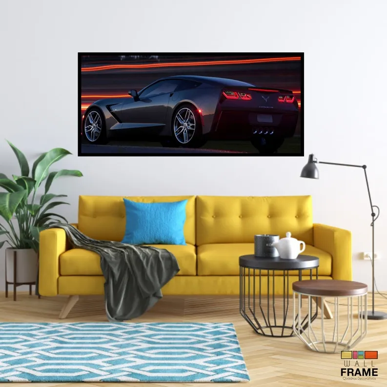 Quadro Decorativo Corvette Velocidade 130x60 Moldura preta 2x2 cm