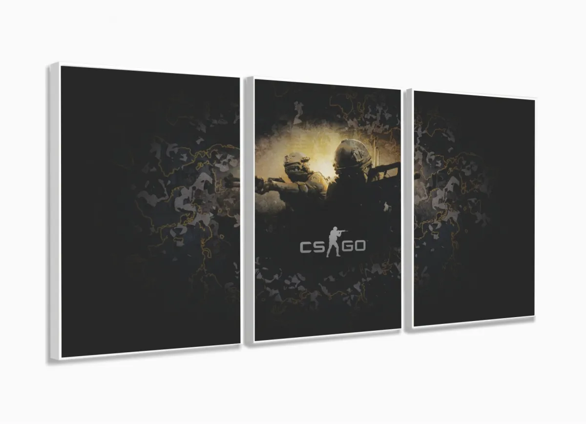 Quadro Decorativo CS GO 120x60 em tecido com moldura filete