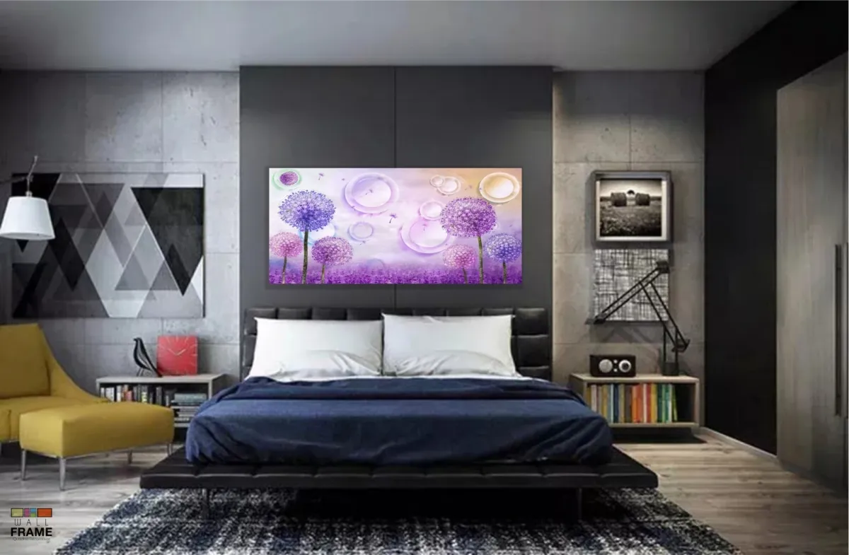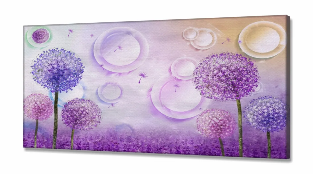 Quadro Decorativo Dente de Leão Lilas em Tecido Canvas 130x60 cm