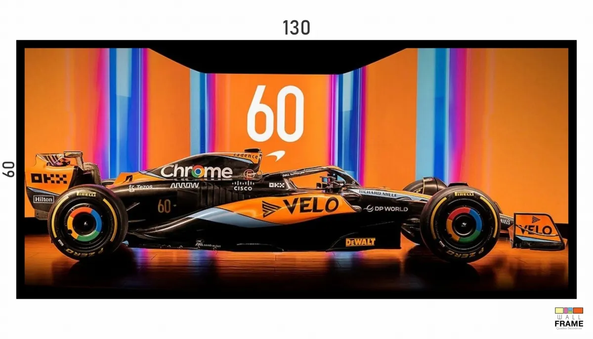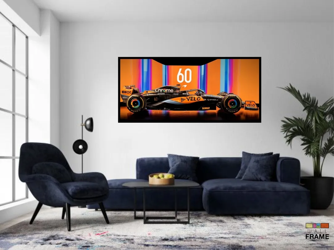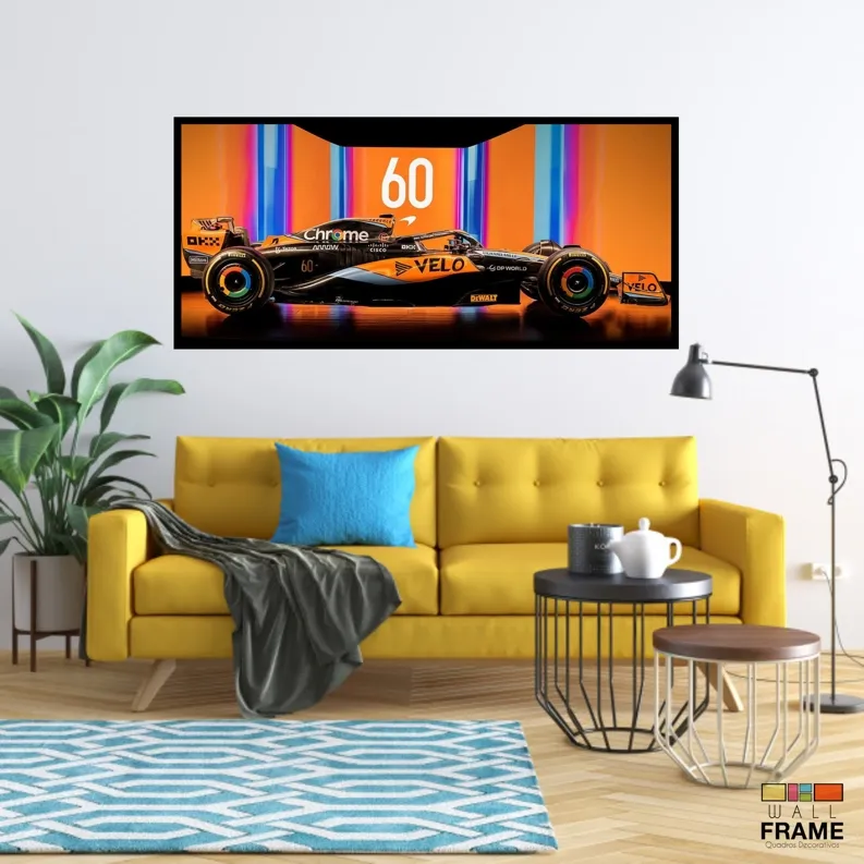 Quadro Decorativo F1 Corrida Carro GP 130x60 moldura preta 2x2 cm
