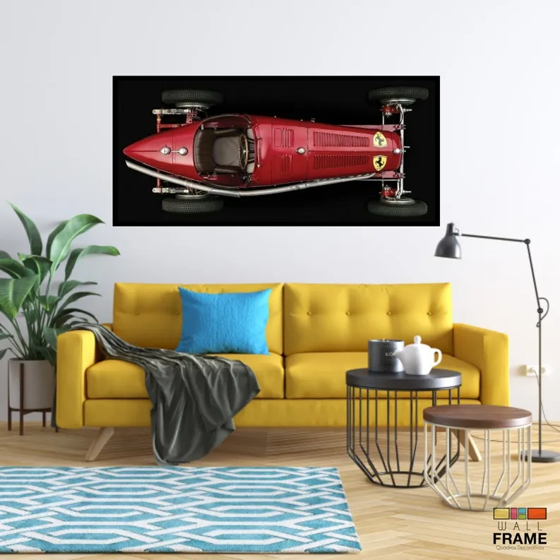 Quadro Decorativo F1 Ferrari Super Antiga 130x60 Moldura preta 2x2 cm