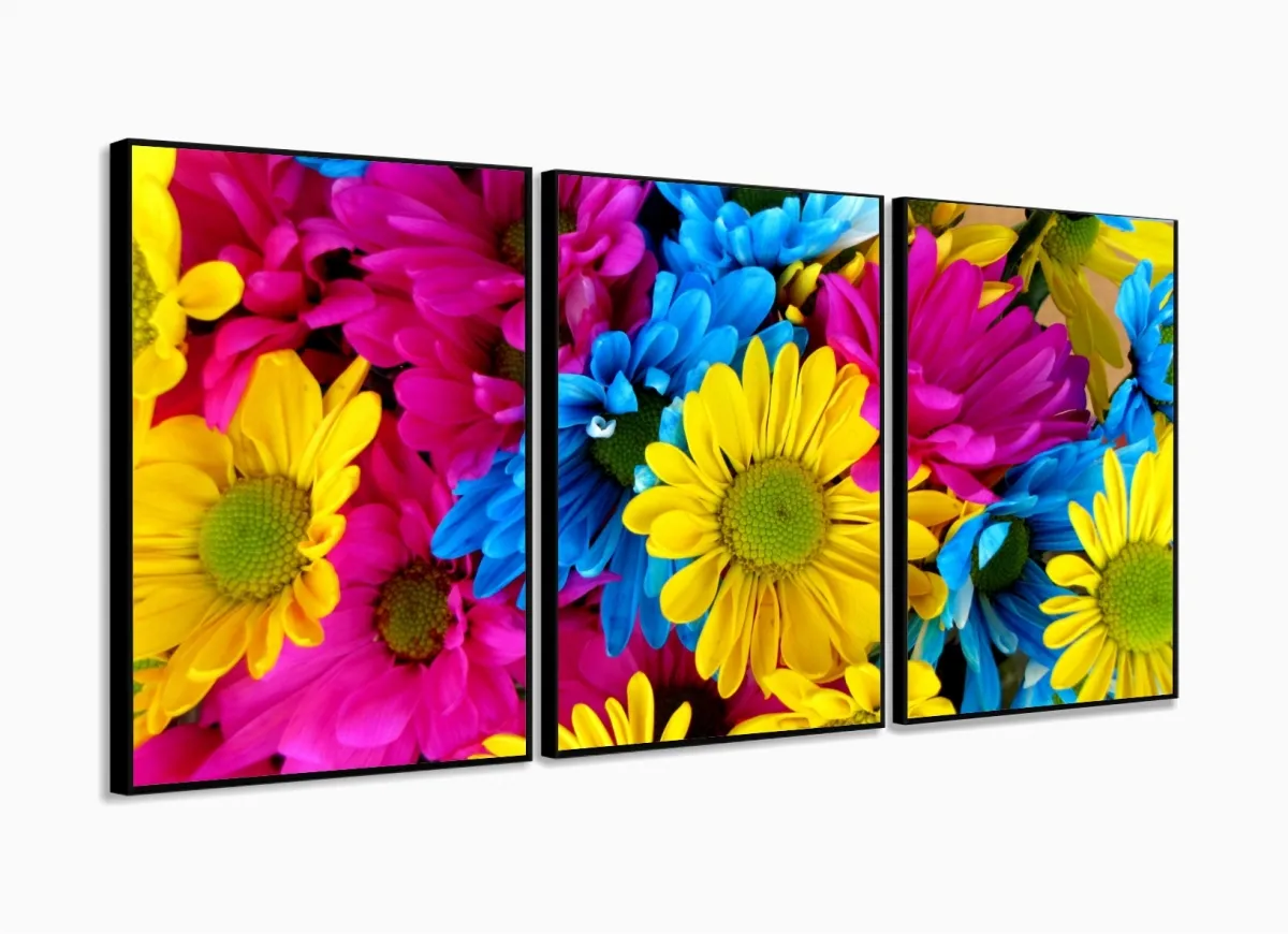 Quadro Decorativo Flores Coloridas Sala Em Tecido120x60 3 peças com moldura filete