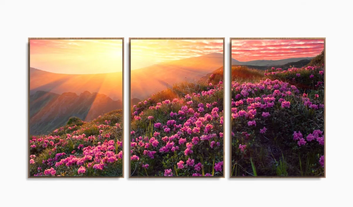 Quadro Decorativo Flores Por Do Sol Hd 120x60 Quarto Sala com moldura filete