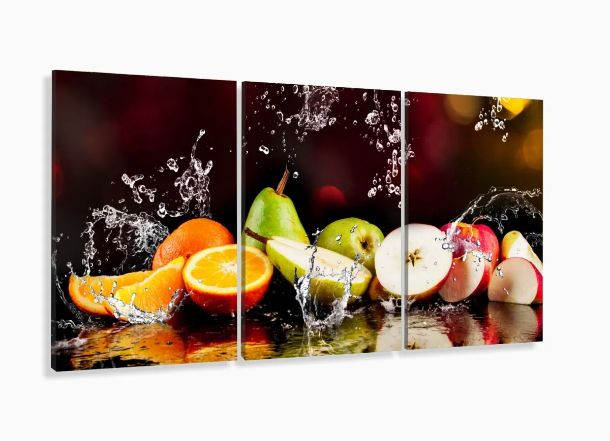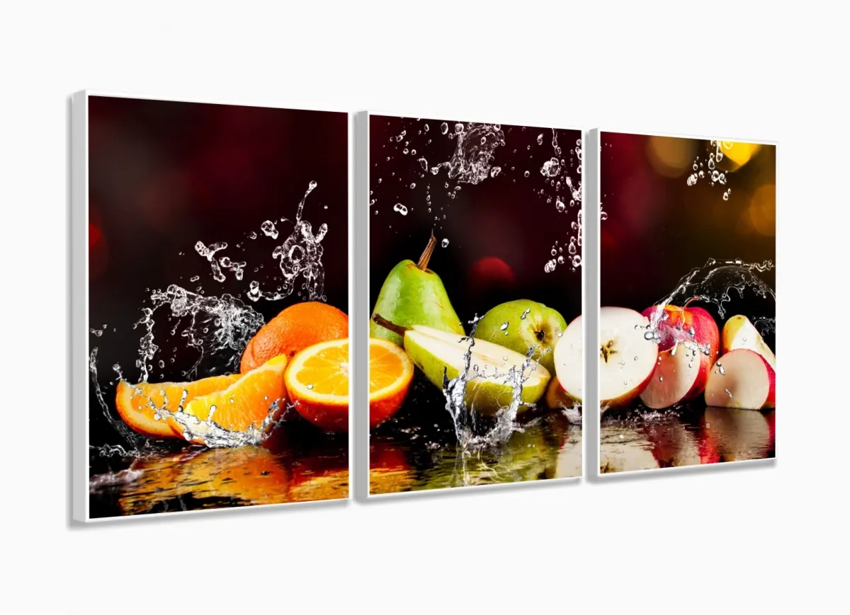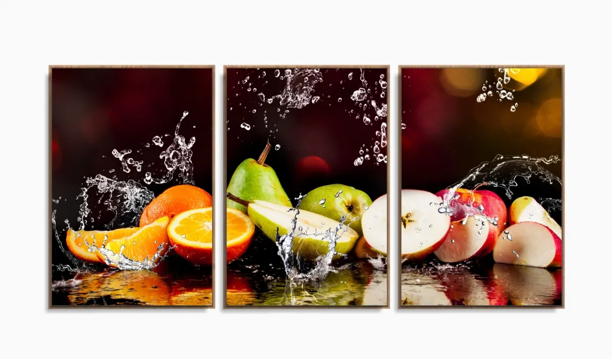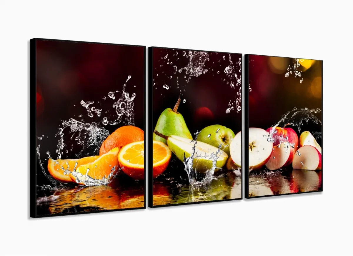 Quadro Decorativo Frutas Na Água 3 Peças 120x60 em tecido com moldura filete