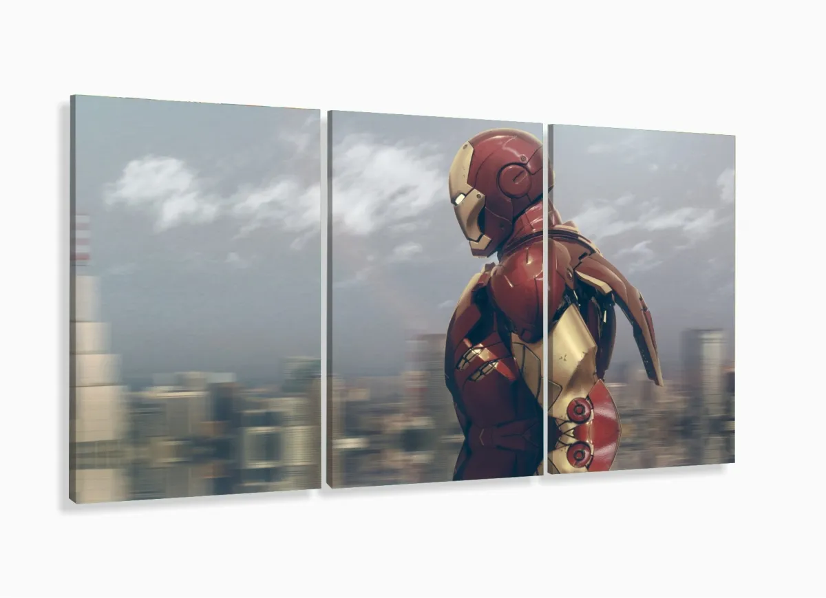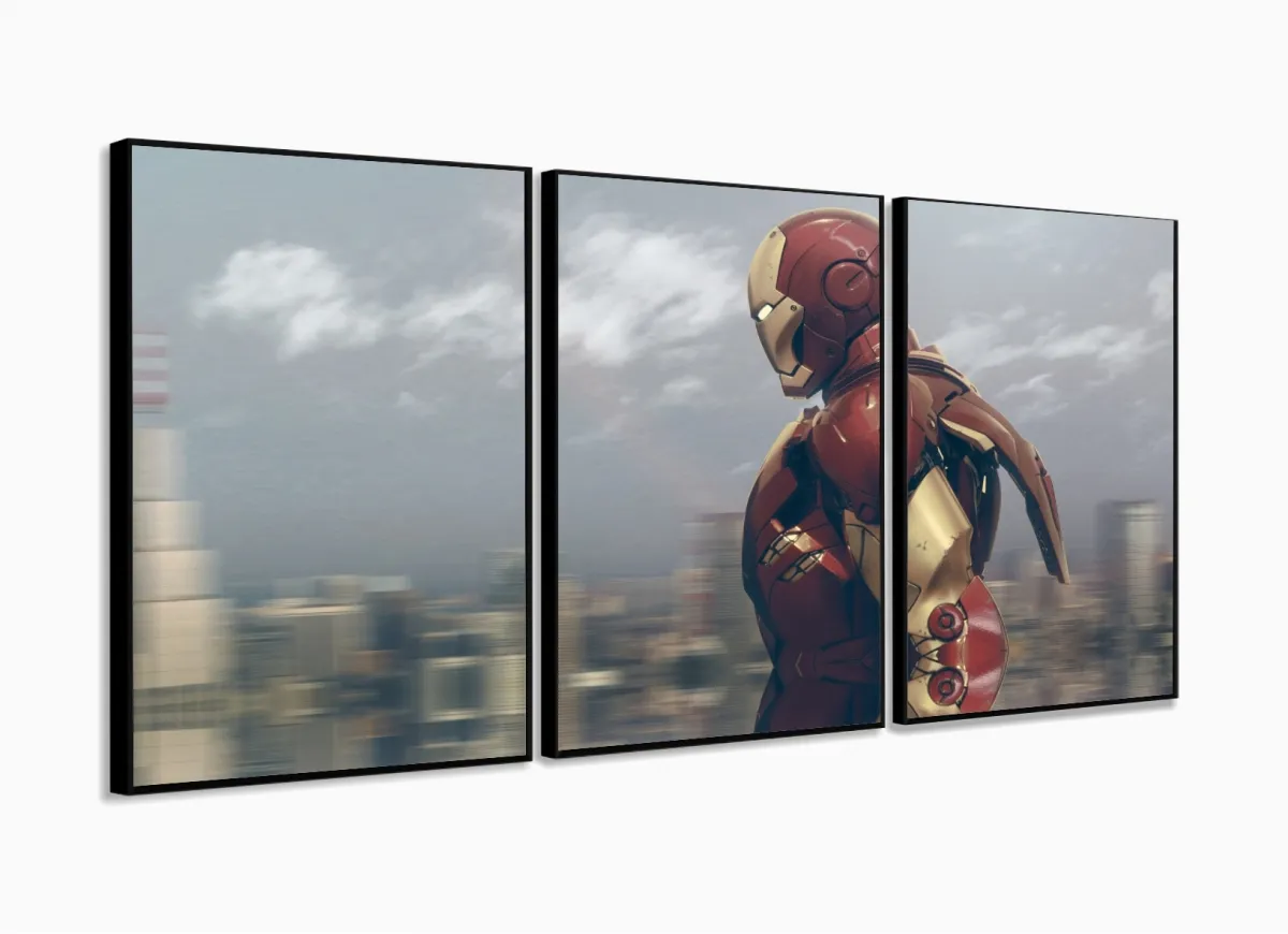 Quadro Decorativo Homem de ferro A 3 peças 120x60 cm em tec com moldura filete