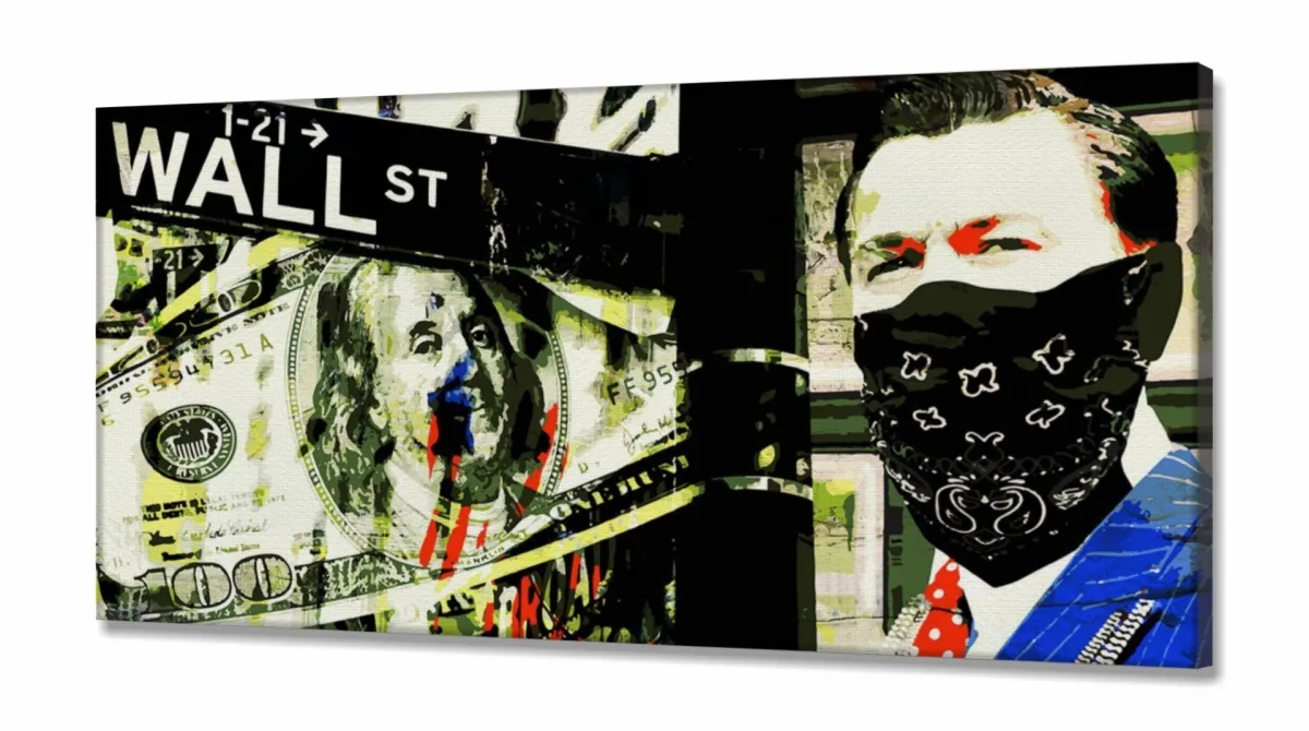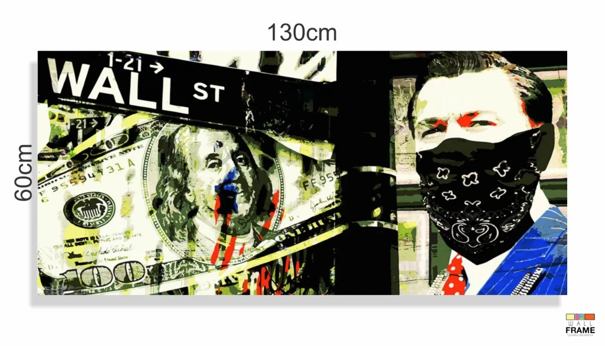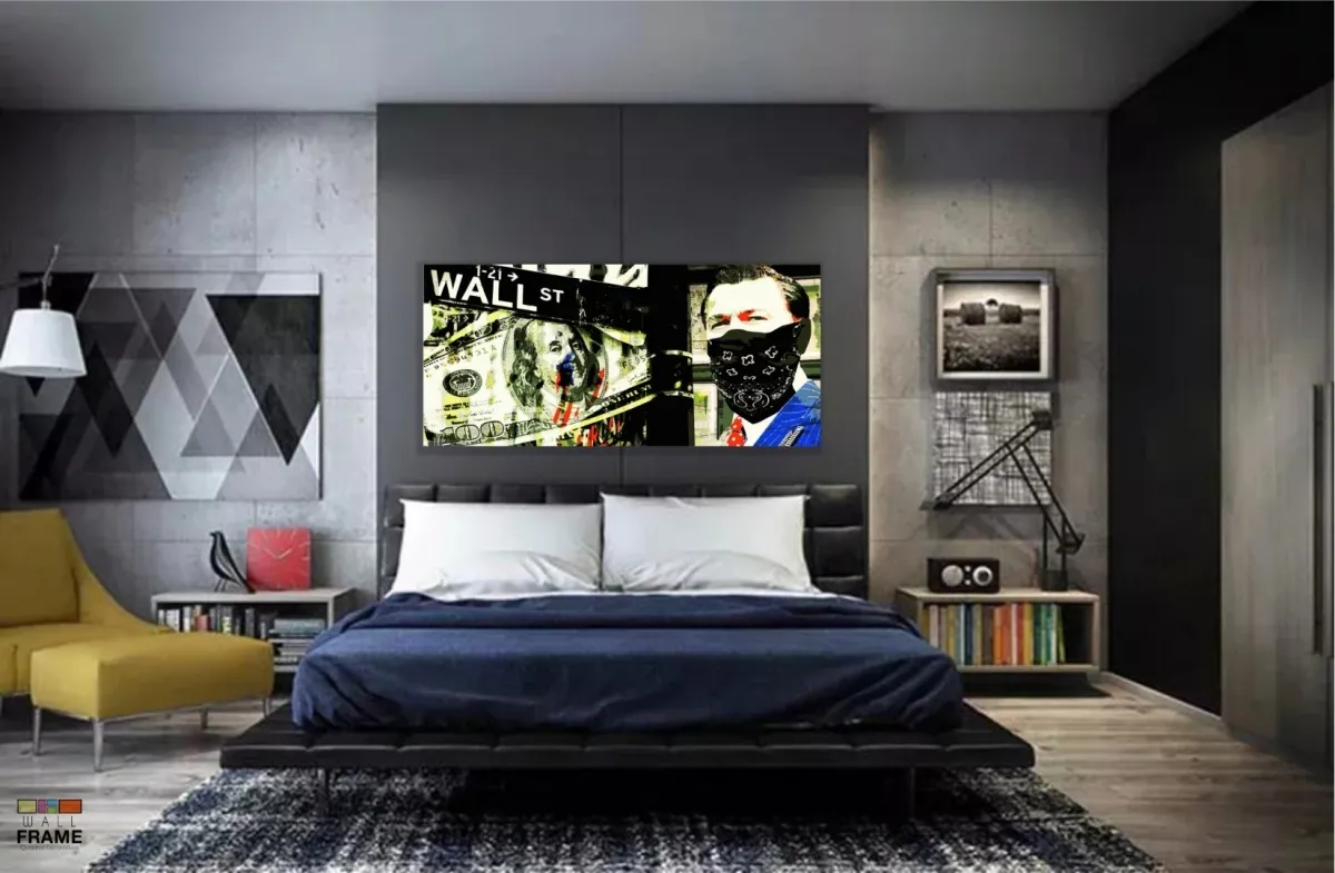 Quadro Decorativo Lobo Wall Street 3 Peças em Tecido Canvas 130x60