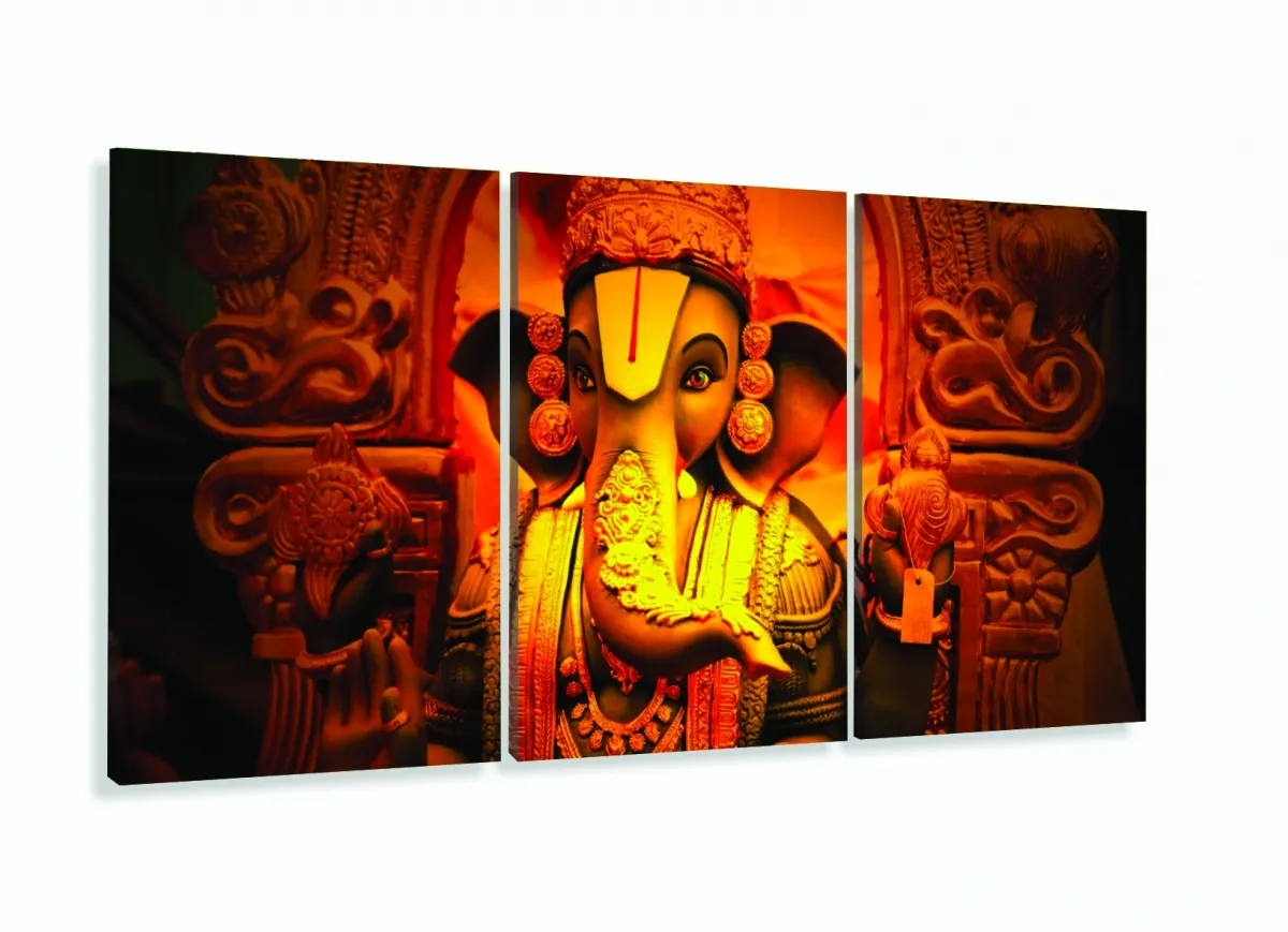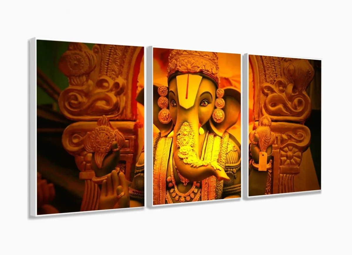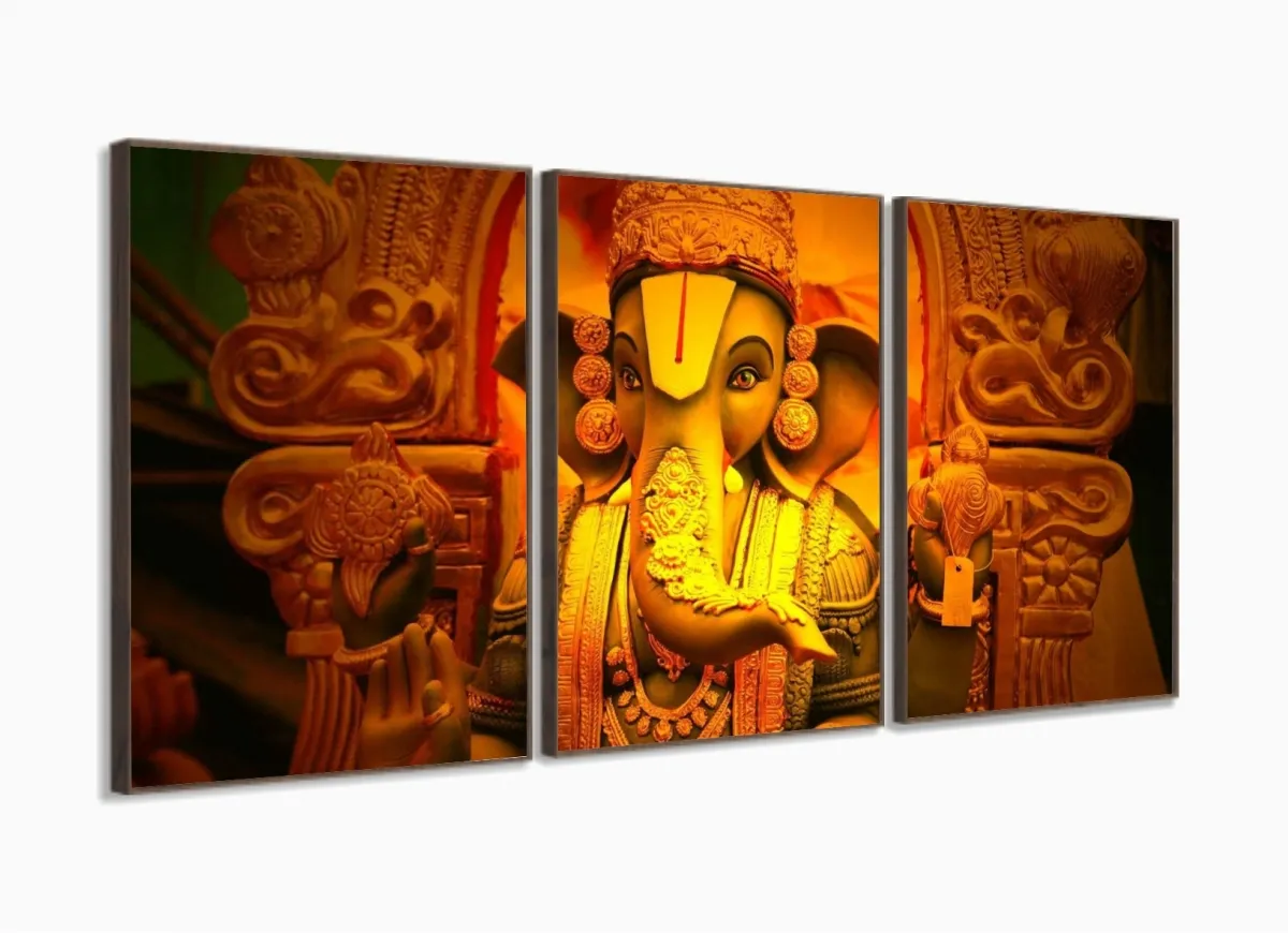 Quadro Decorativo Lord Ghanesha 120x60 3 pçs sala quarto com moldura filete