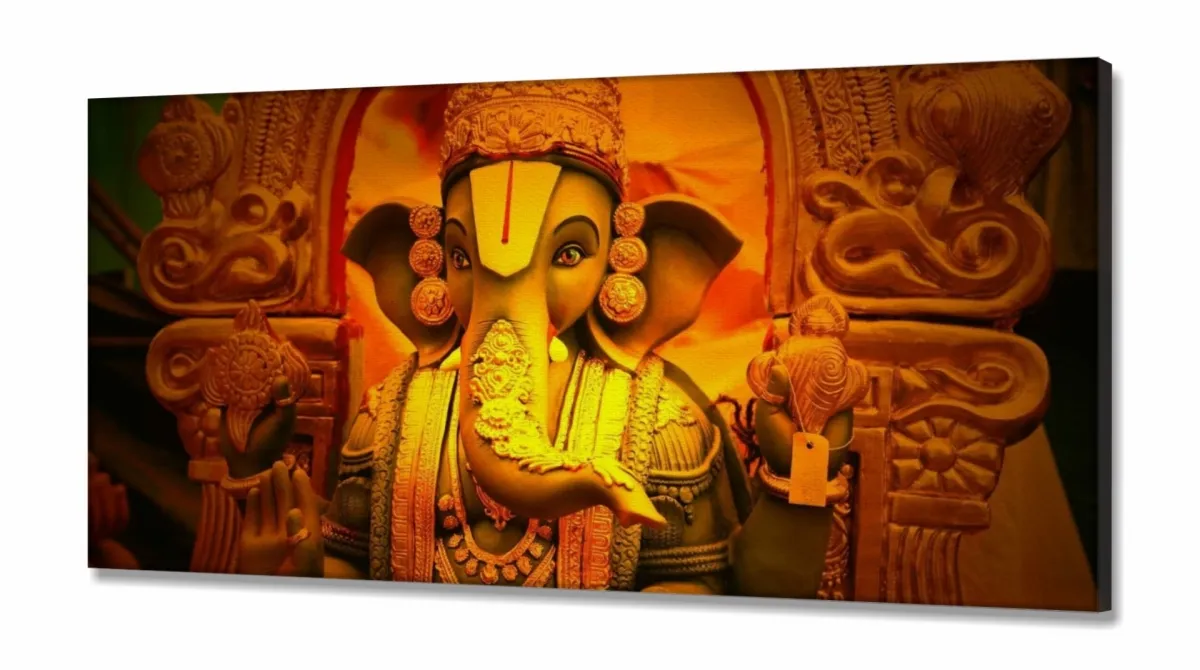 Quadro Decorativo Lord Ghanesha em Tecido Canvas 130x60