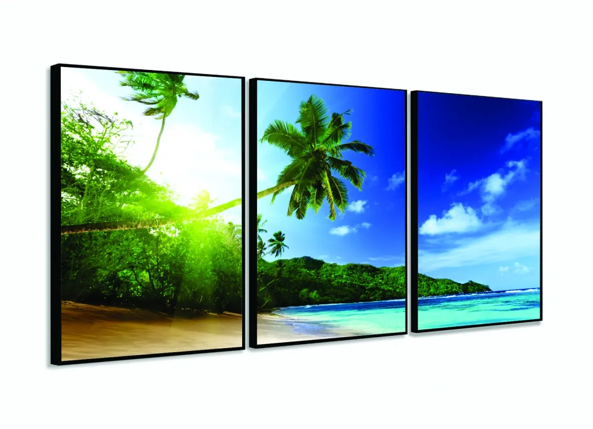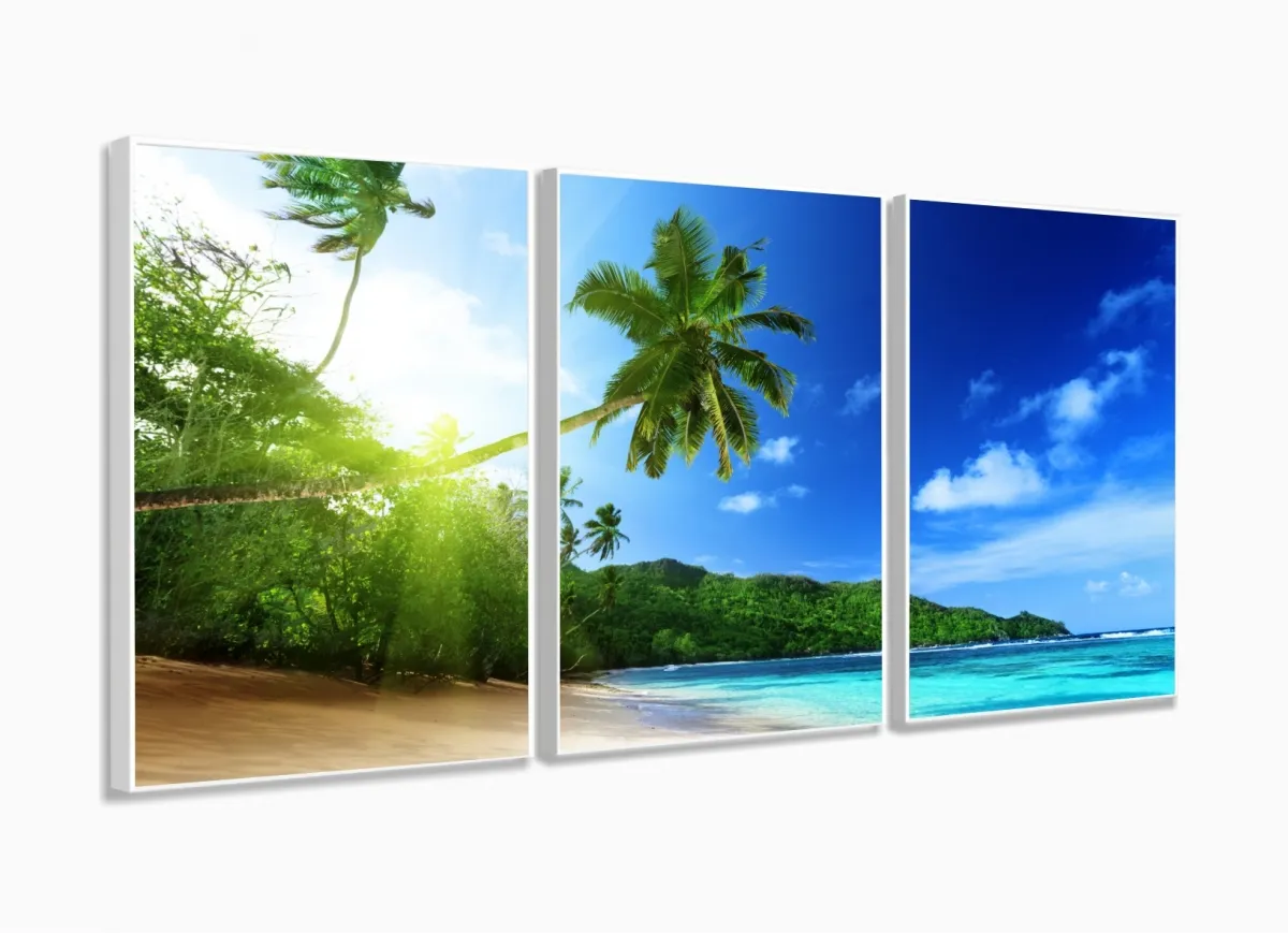 Quadros Decorativos Praia Ilha 120x60 3 peças em Tecido com moldura filete