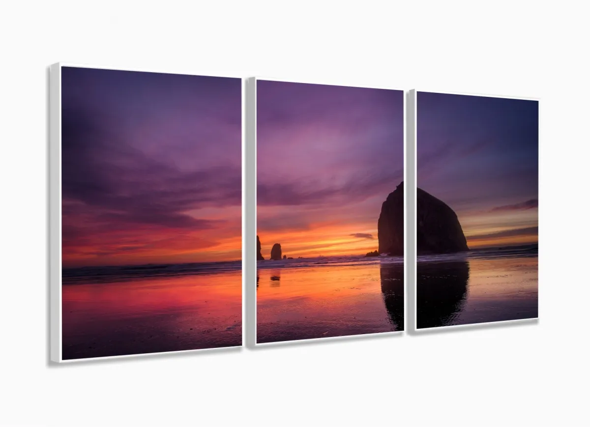 Quadro Decorativo Mar Entardecer Primavera 120x60 3 pç com moldura filete