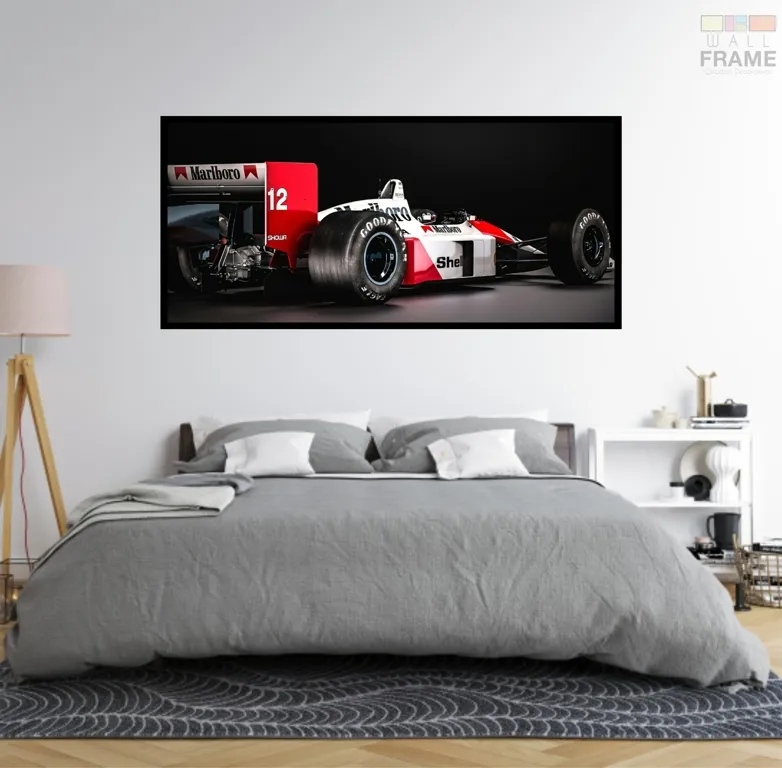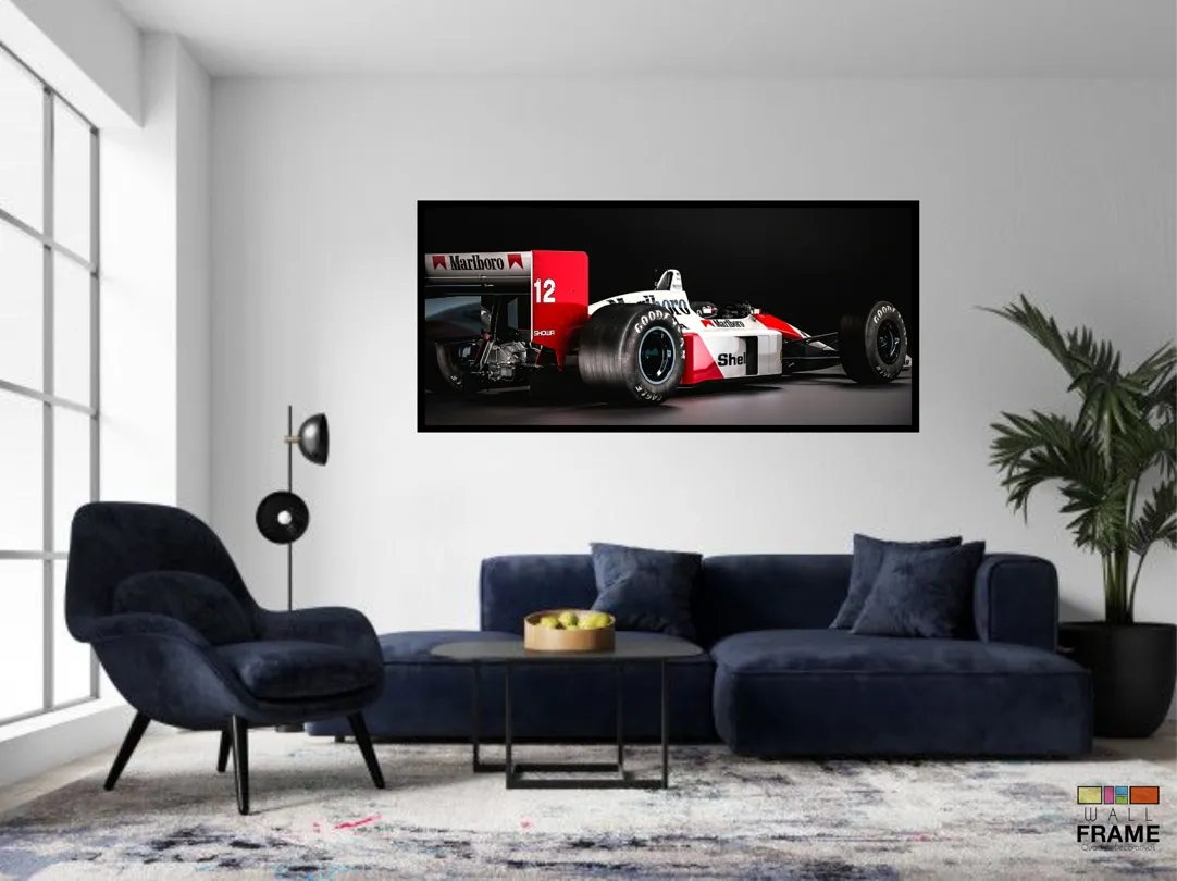 Quadro Decorativo Marlboro F1 Honda Senna 130x60 Moldura preta 2x2 cm