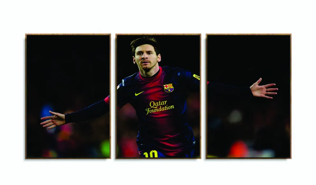 Quadro Decorativo Messi 3 peças 120x60 cm em tecido com moldura filete