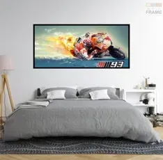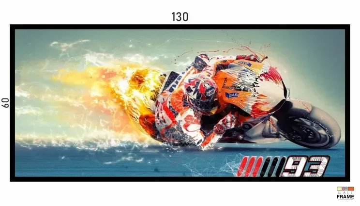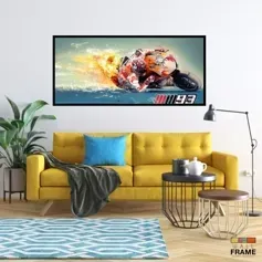 Quadro Decorativo Moto Esportiva Curvas 130x60 Moldura preta 2x2 cm