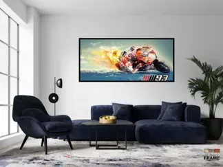 Quadro em Vinil de alto brilho com impressão digital com moldura e opção de acrílico cristal para substituir o vidro.