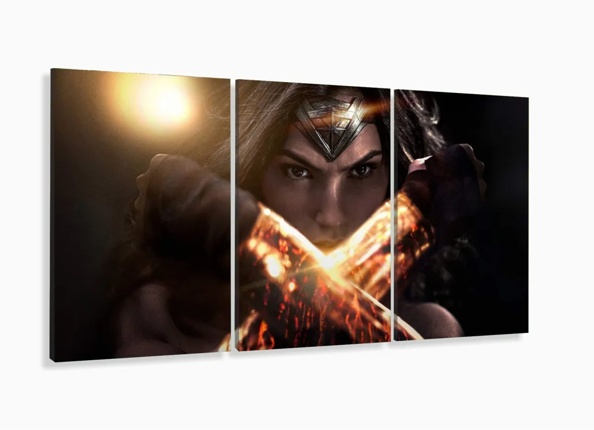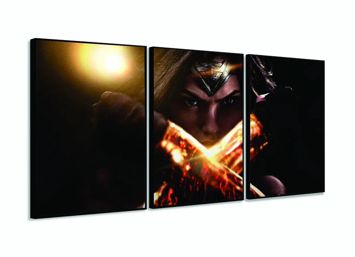 Quadro Decorativo mulher-maravilha 120x60 em tecido com moldura filete
