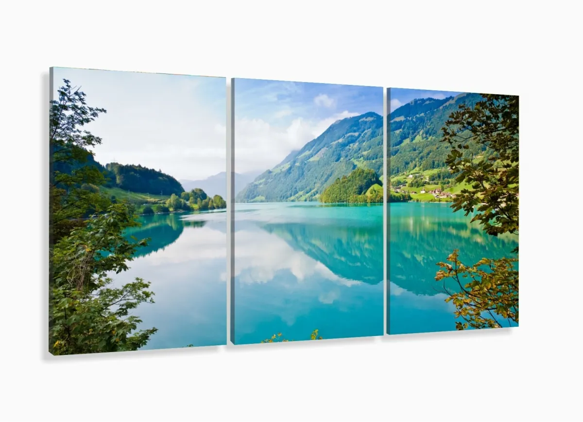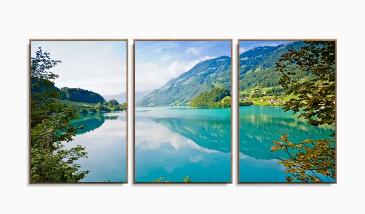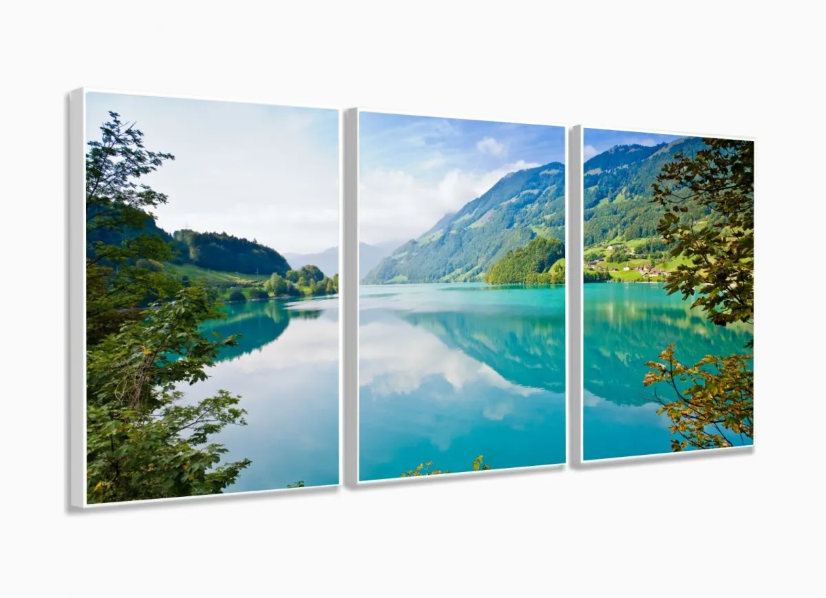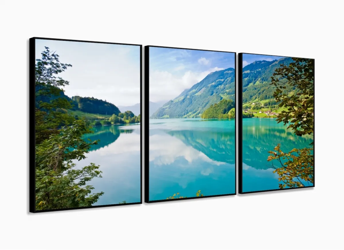 Quadro Decorativo Natureza Paisagem Em Tecido 3 Peças com moldura filete