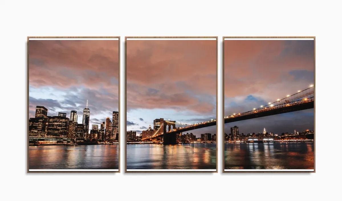 Quadro Decorativo New York Entardecer 120x60 Sala Quarto com moldura filete