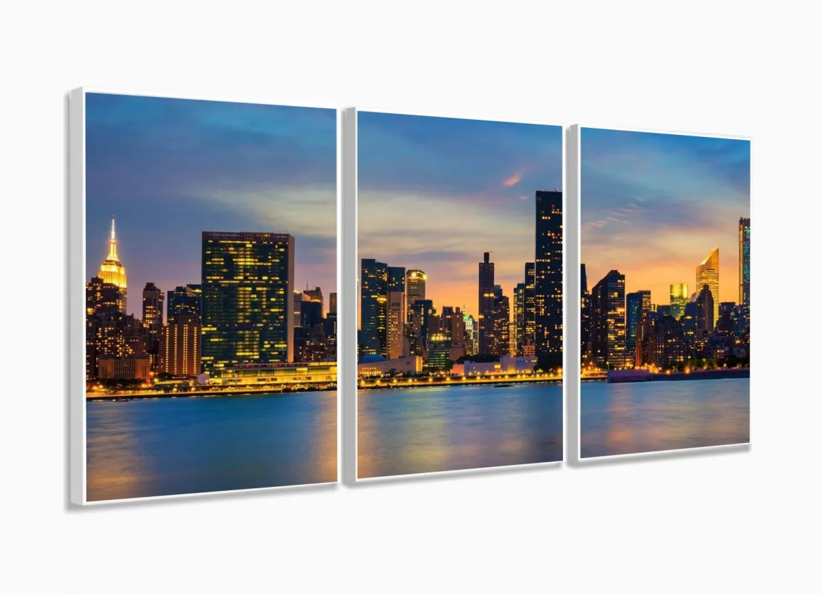 Quadro Decorativo New York Sunset 120x60 Sala Quarto com moldura filete