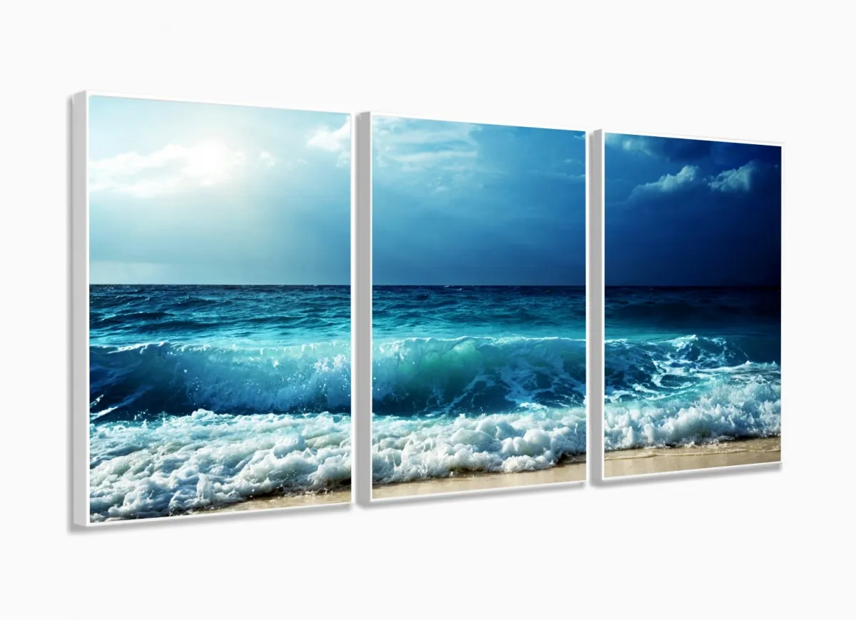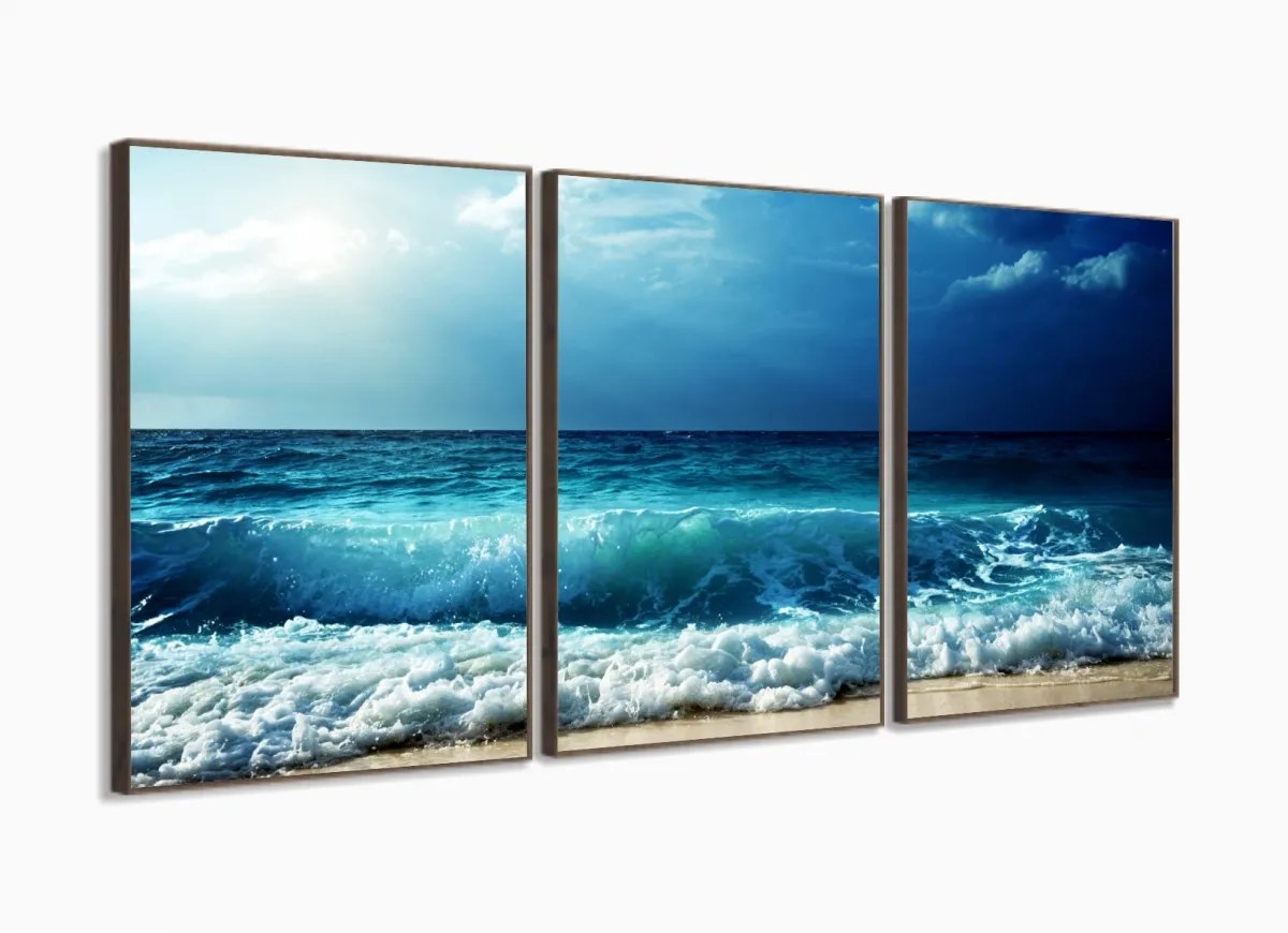 Quadro Decorativo Ondas Mar 120x60 Sala Quarto com moldura filete