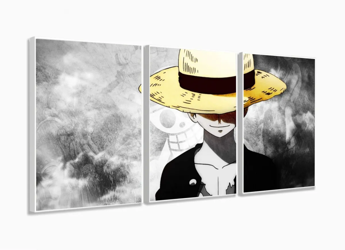 Quadro decorativo One Piece Mosaico Luffy 120x60 3 peças com moldura filete