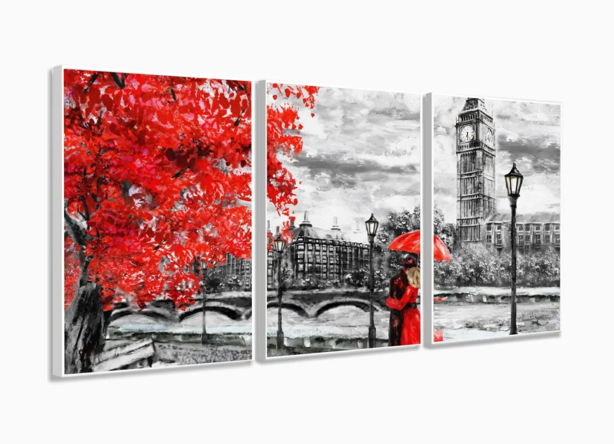 Quadros Decorativos Paisagem Linda Hd 120x60 3 peças em Tecido com moldura filete